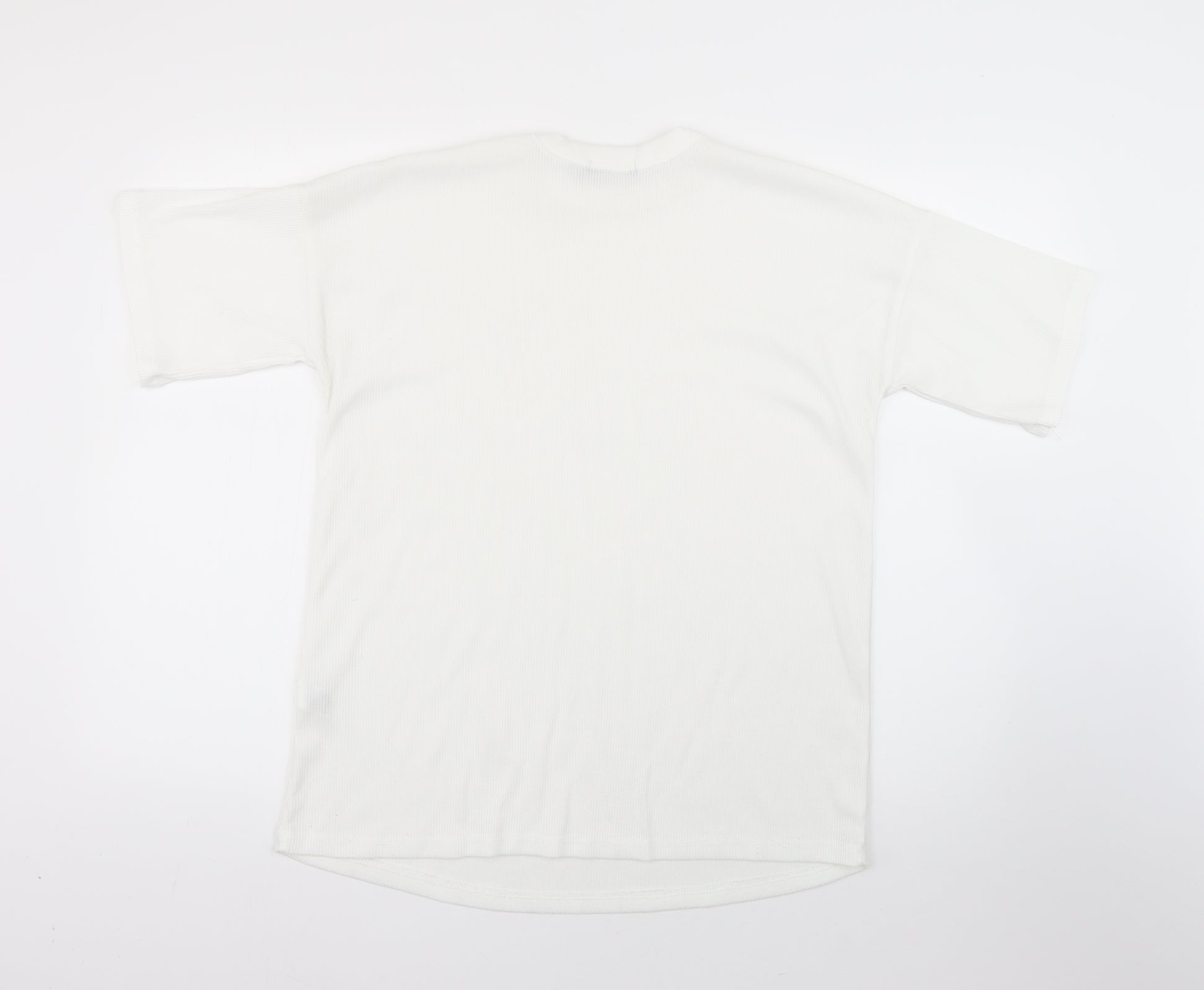 Boohoo Womens White Striped Polyester Basic T-Shirt Size 10 Round Neck