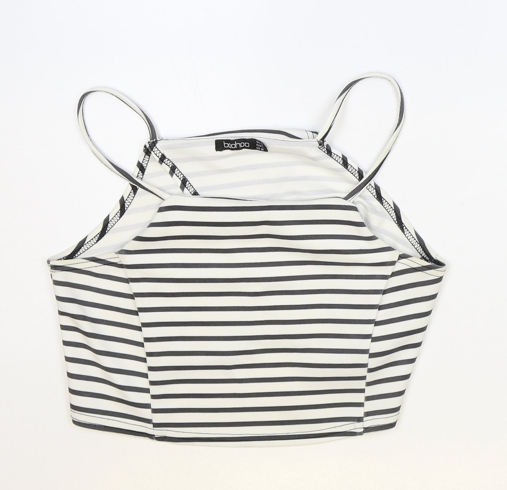 Boohoo Womens White Striped Polyester Cropped Tank Size 12 Square Neck - Open Wrap Back Detail