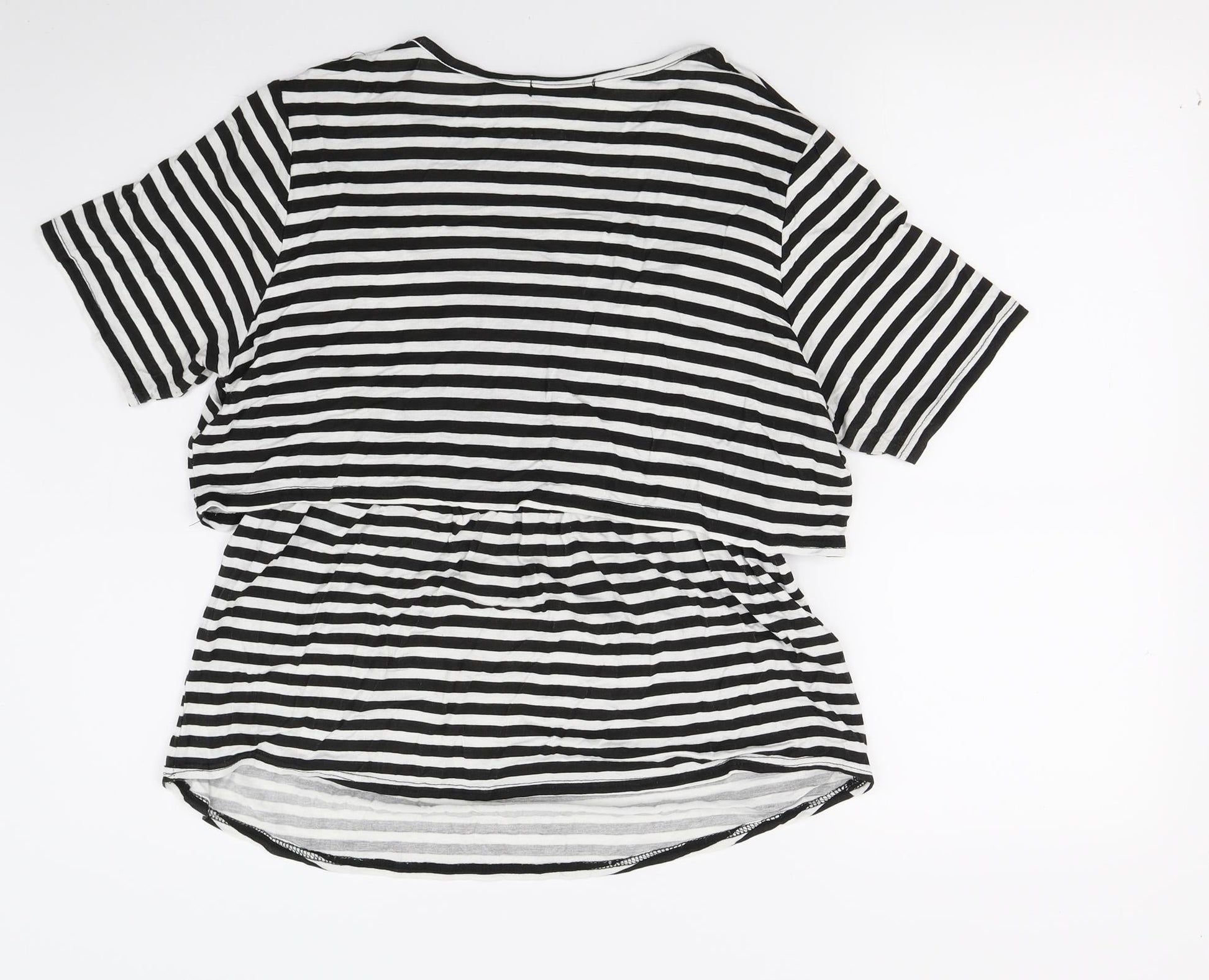 Boohoo Womens White Striped Tunic T-Shirt Size 16