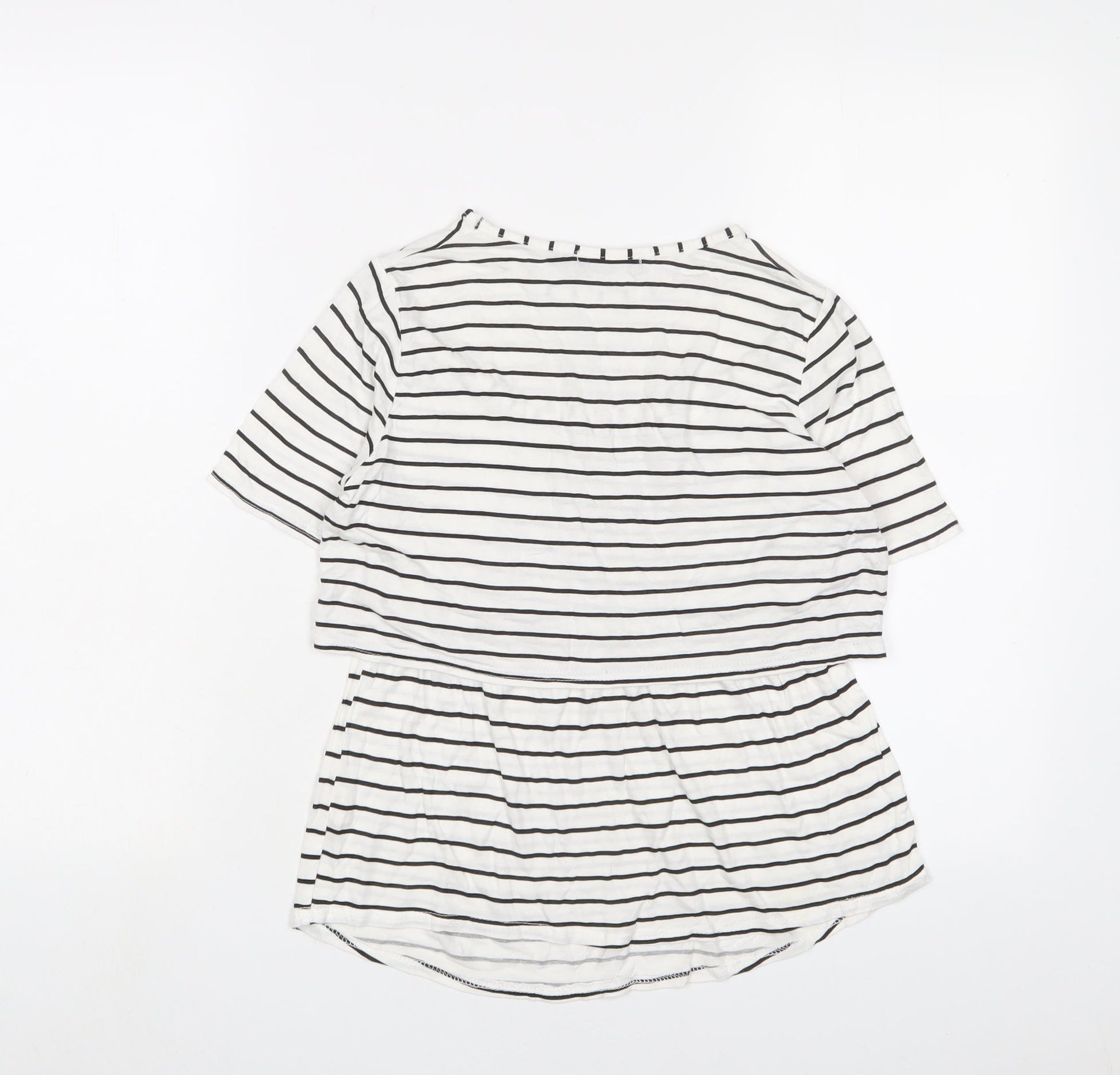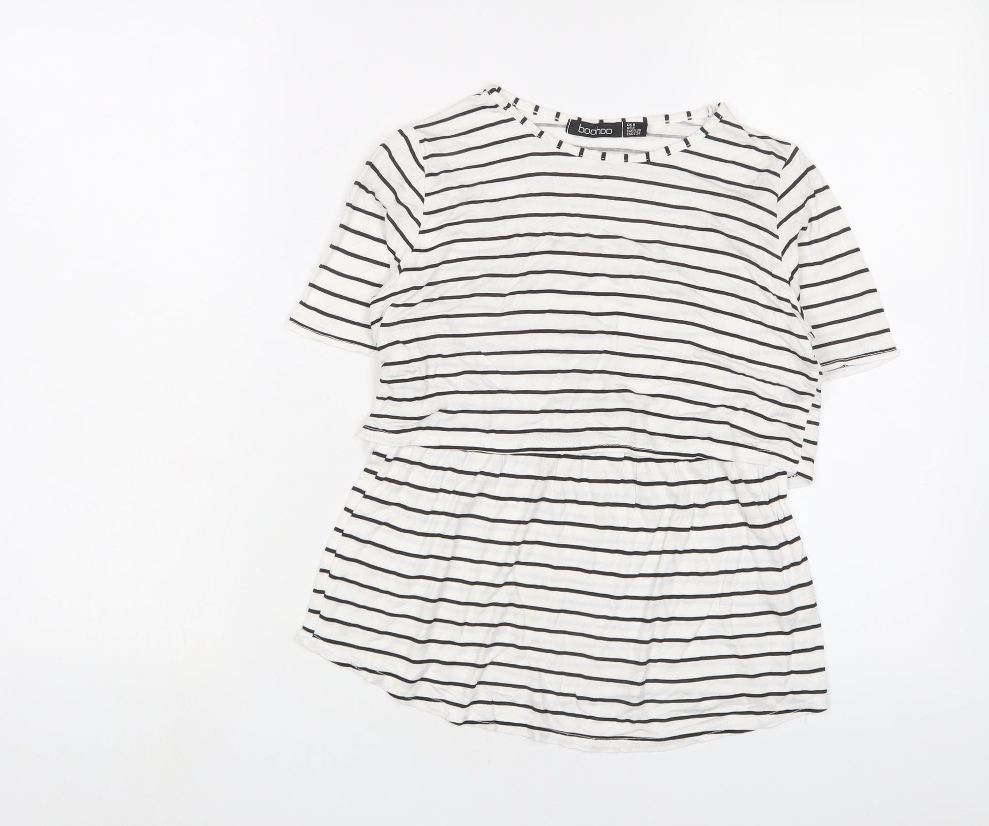 Boohoo Womens White Striped Viscose Basic T-Shirt Size 8 Crew Neck