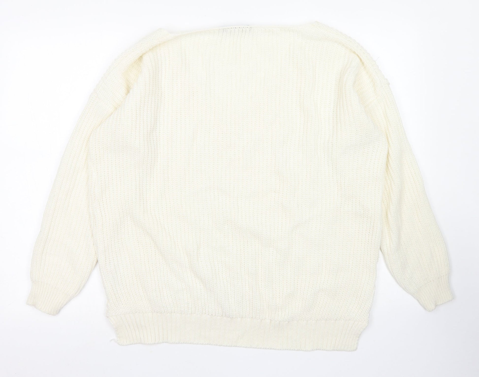 Boohoo Womens White V-Neck Acrylic Pullover Jumper Size S