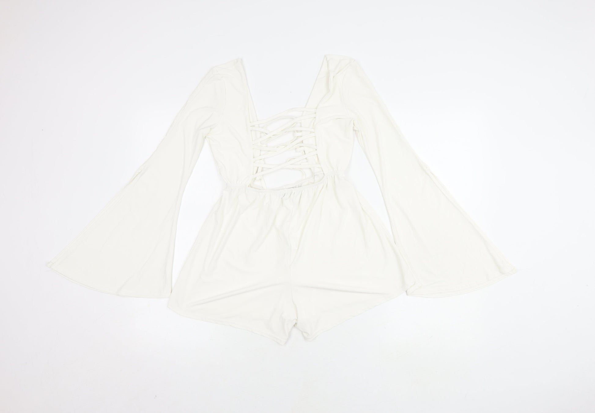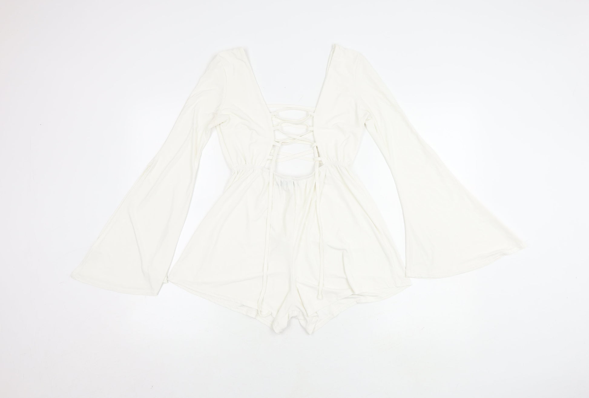 Boohoo Women's White V-Neck Long Sleeve Playsuit