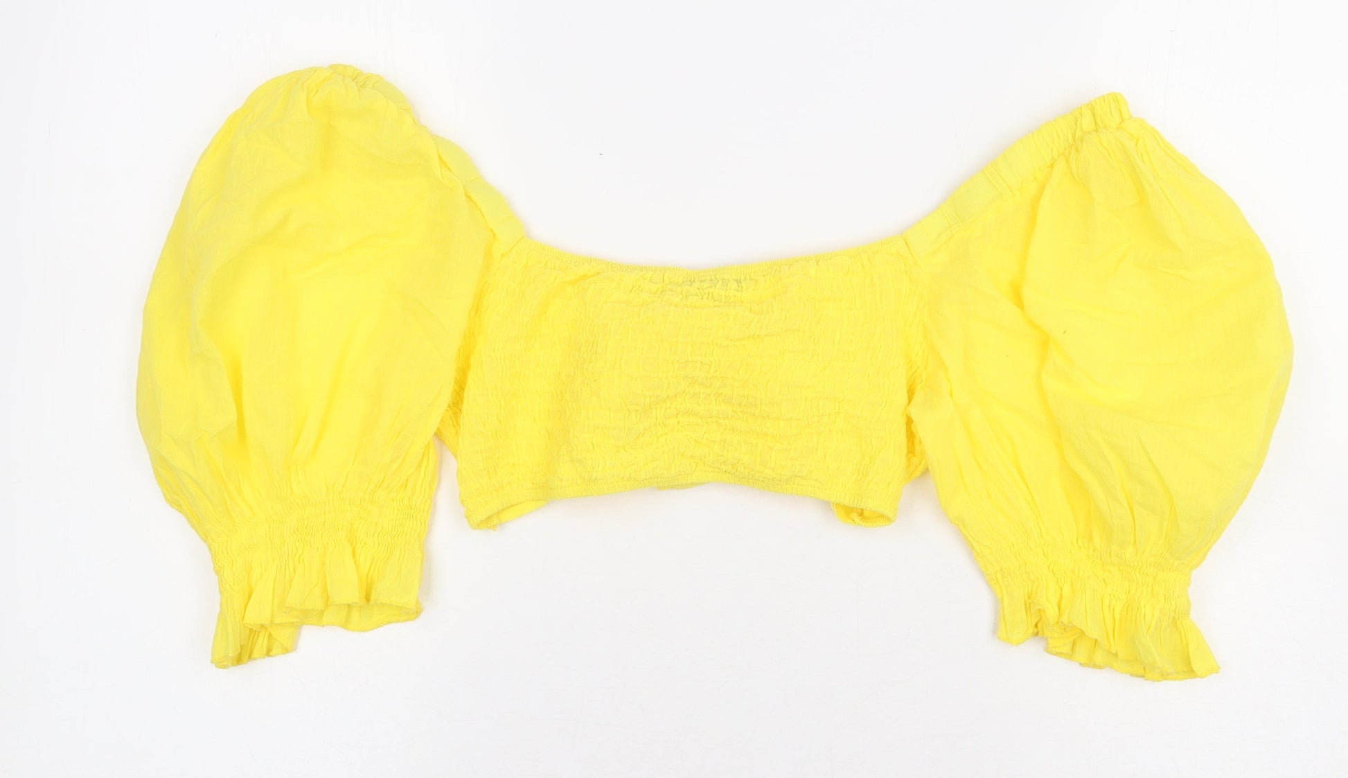 Boohoo Womens Yellow 100% Cotton Basic Blouse Size 10 V-Neck