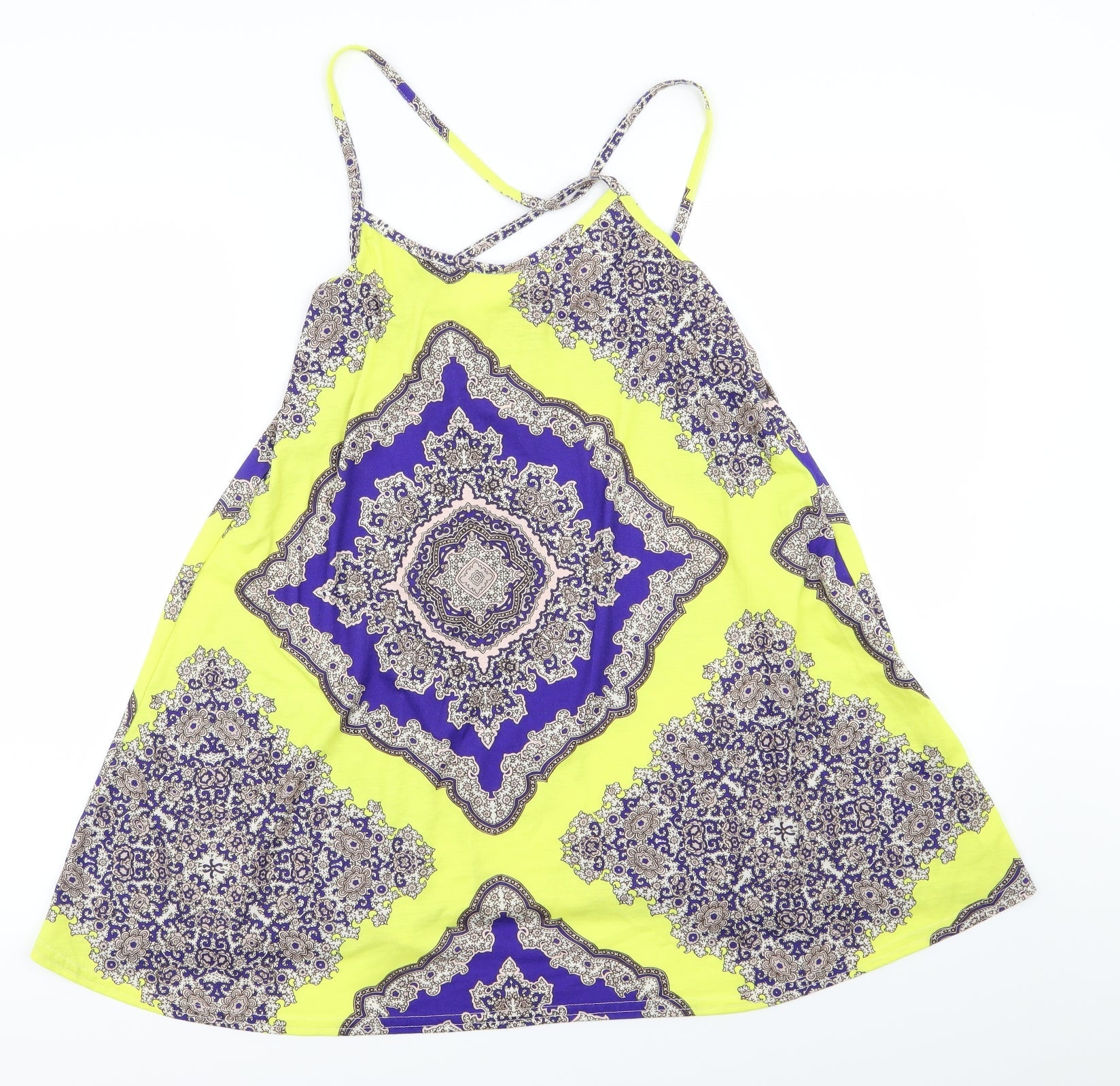 Boohoo Womens Yellow Argyle/Diamond Fit & Flare Size 6