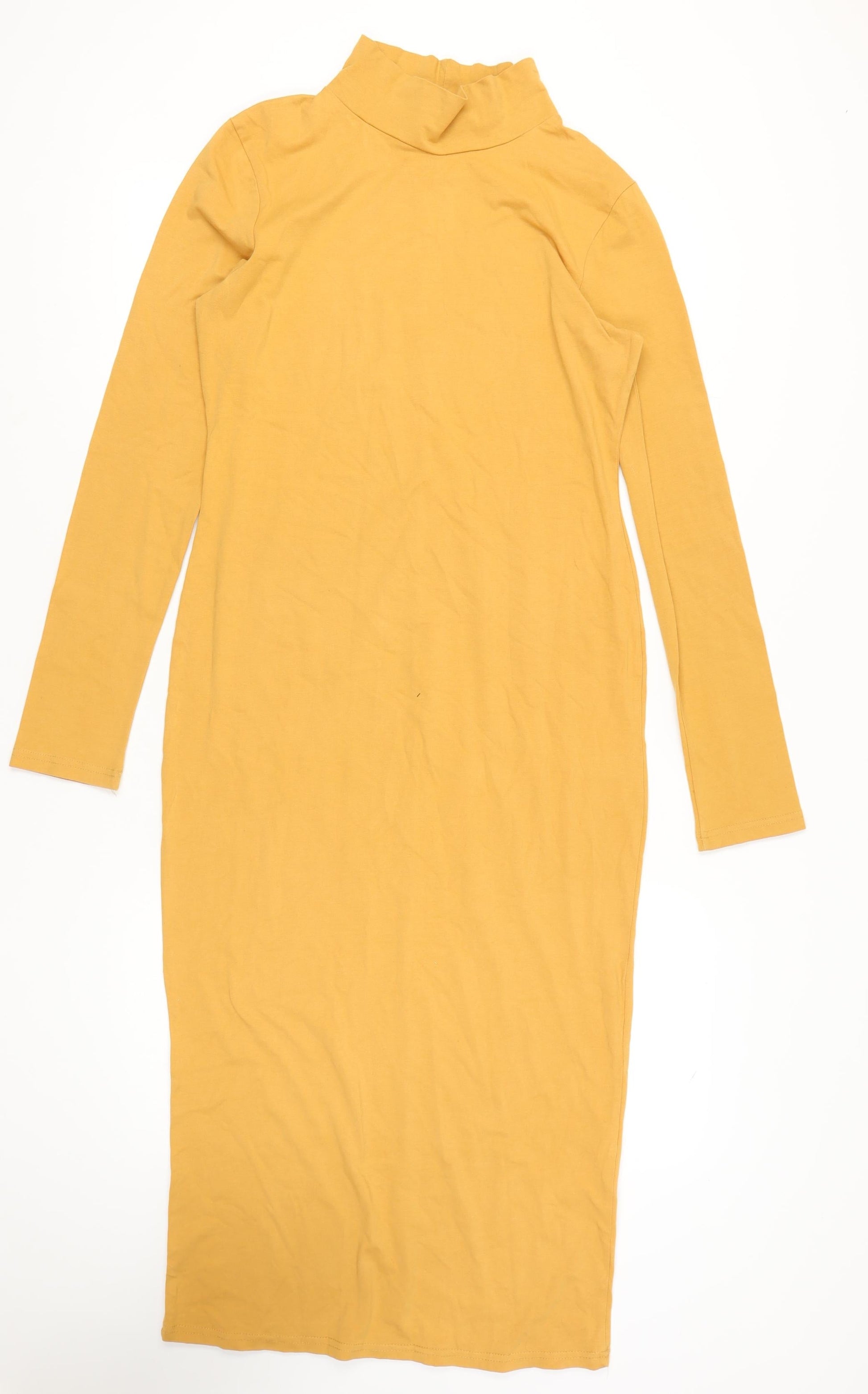 Boohoo Women's Yellow Bodycon Dress, Size 14, Midi