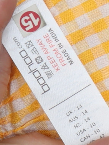 Boohoo Women's Yellow Check Strappy Dress - Size 14