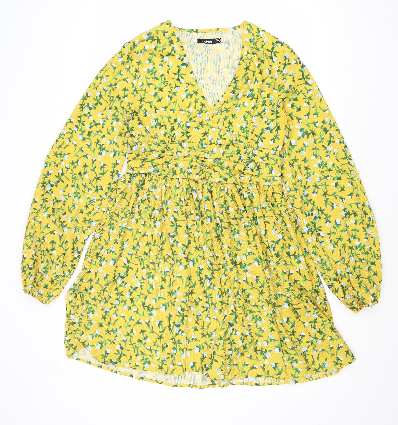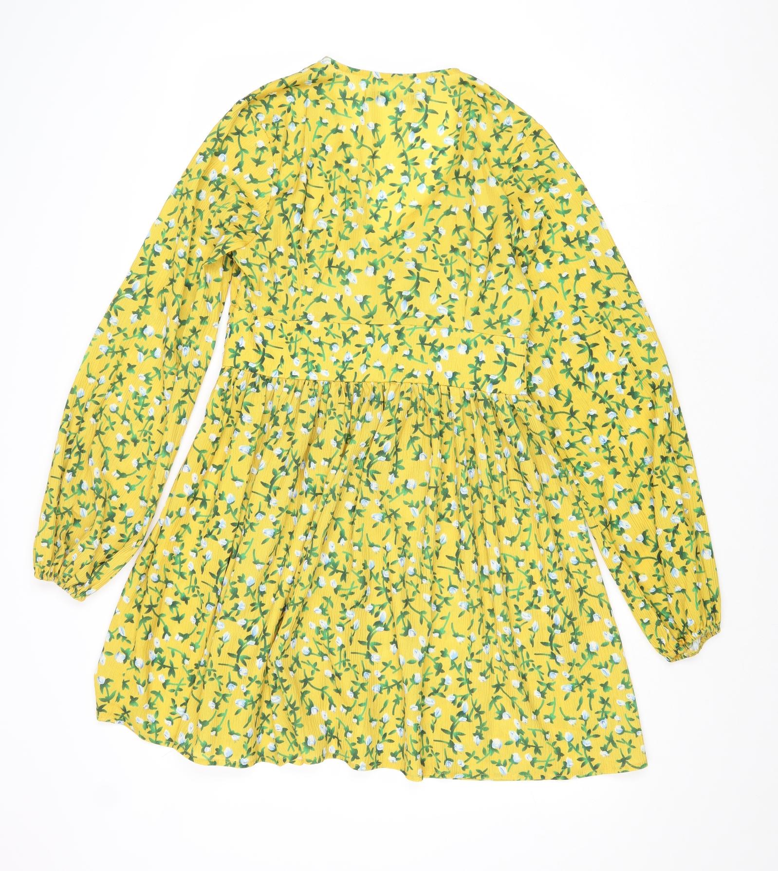 Boohoo Womens Yellow Floral Polyester Fit & Flare Size 10 V-Neck Zip
