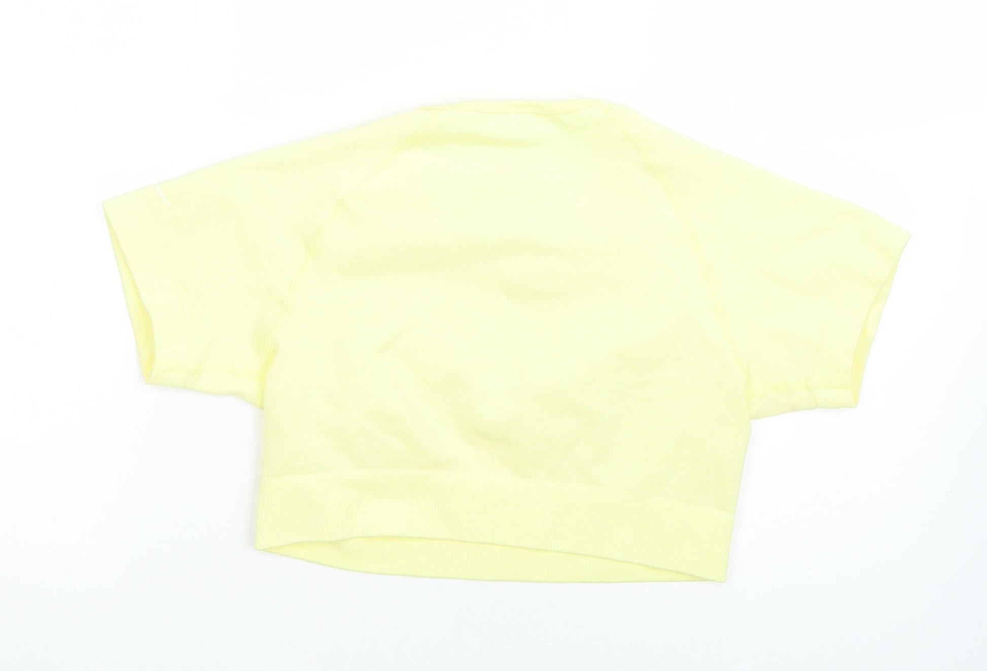 Boohoo Womens Yellow Polyamide Cropped T-Shirt Size M Round Neck