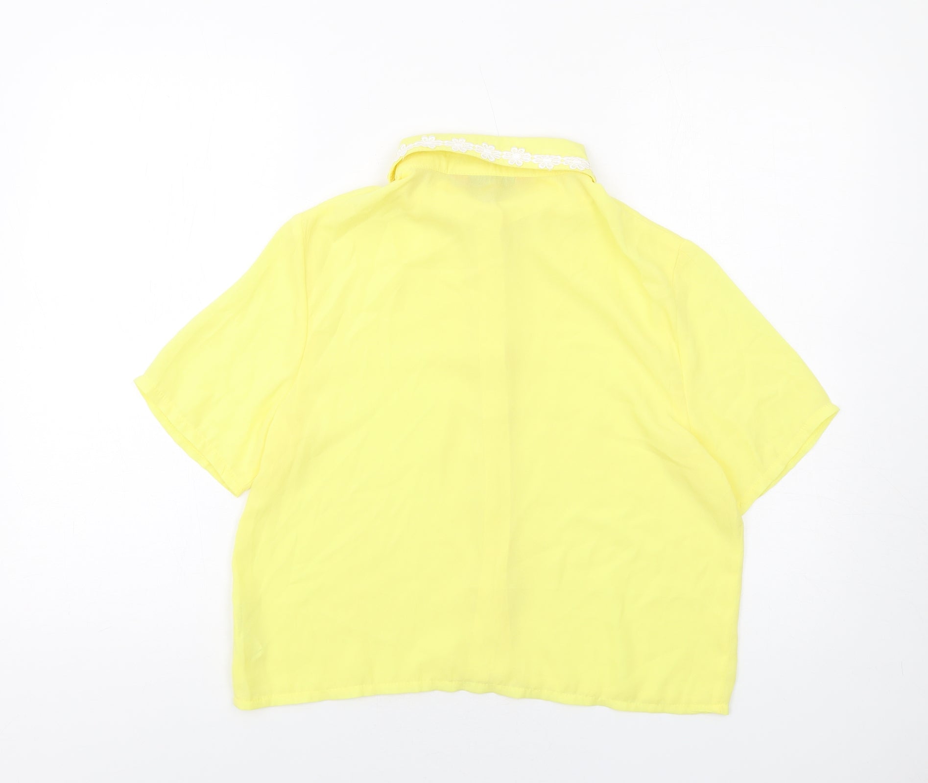 Boohoo Womens Yellow Polyester Basic Button-Up Size 10 Collared - Embroidered Collar