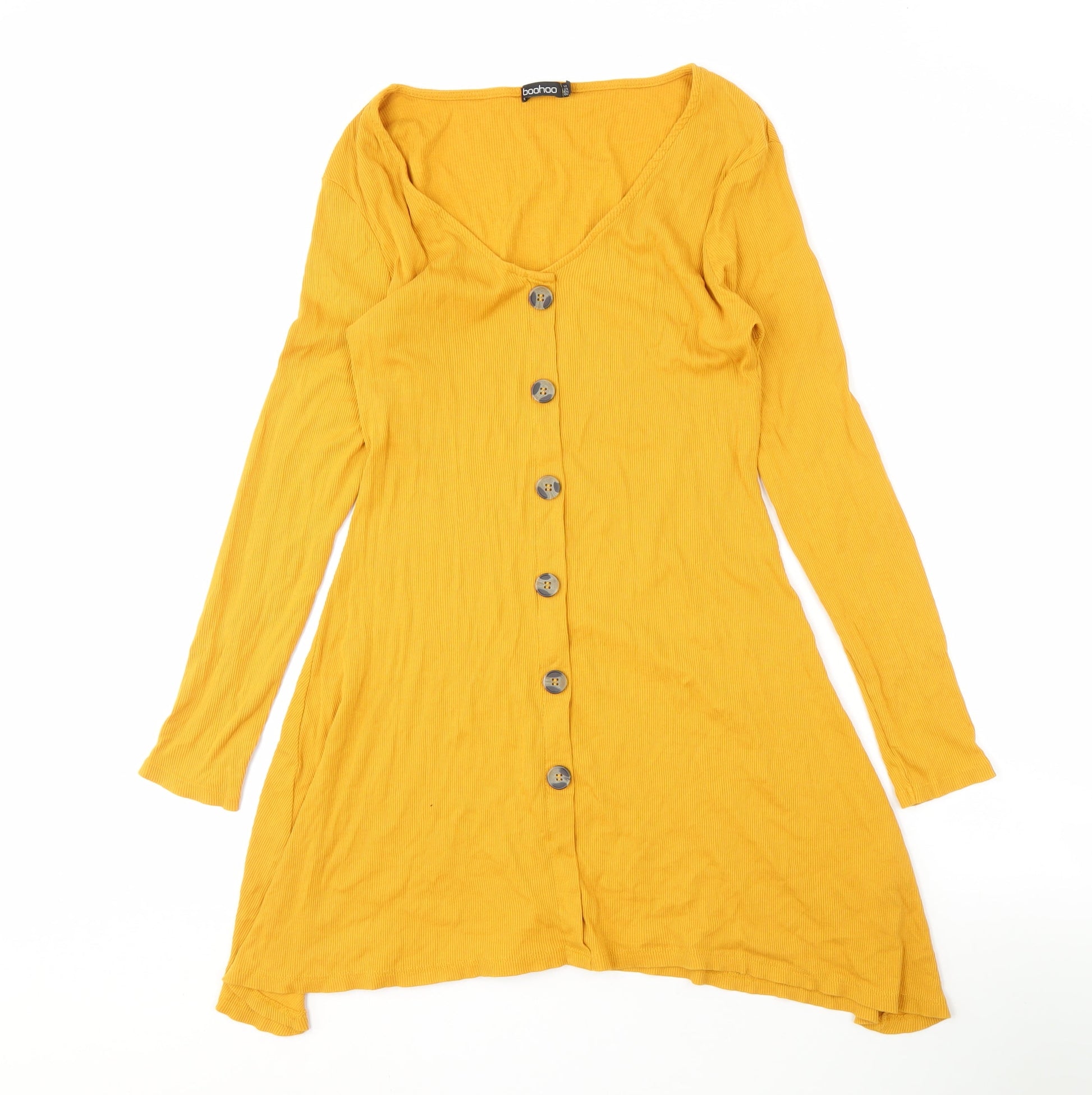 Boohoo Yellow Long Sleeve V-Neck Dress Size 12
