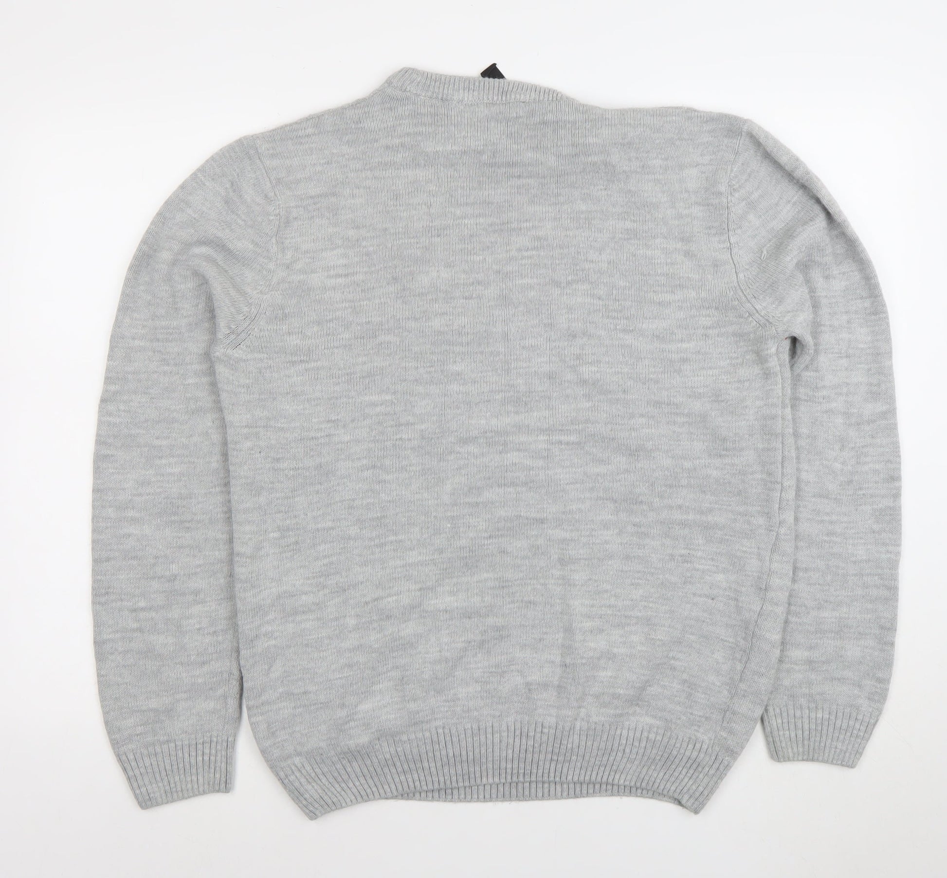 boohooMAN Men Grey Christmas Penguin Knit Jumper L