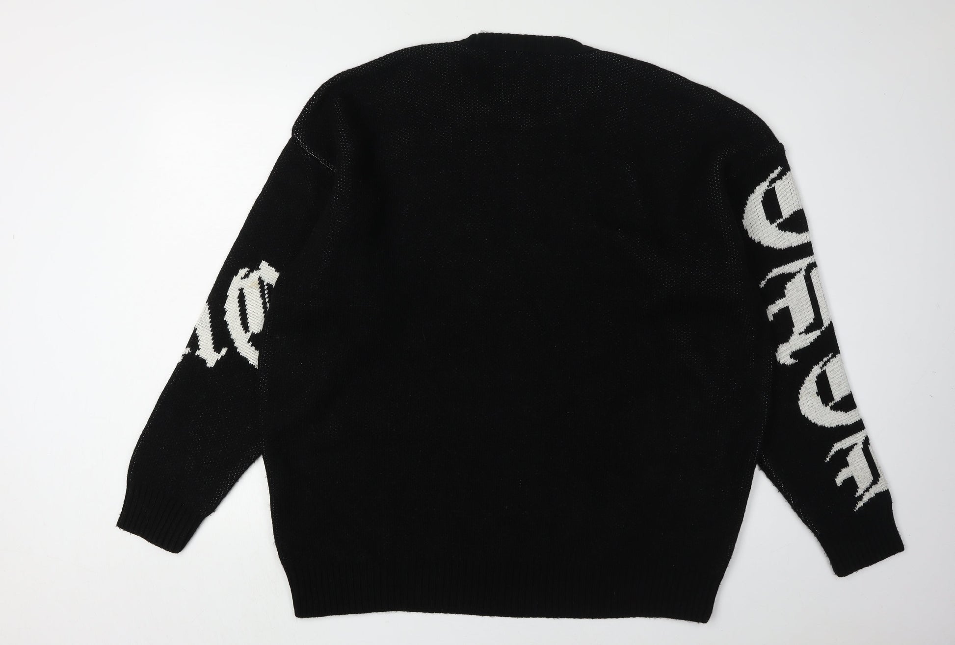 boohooMAN Men's Black Graphic Pullover Jumper M