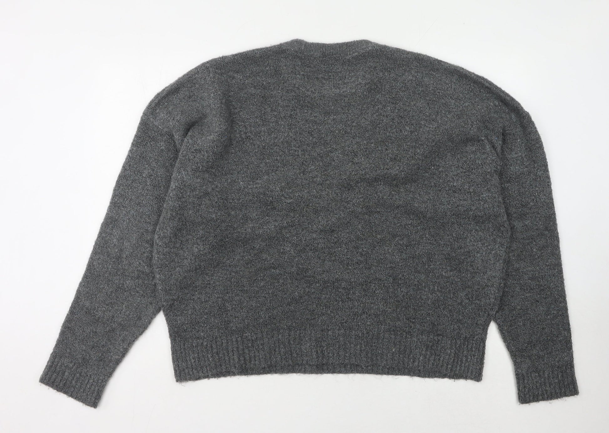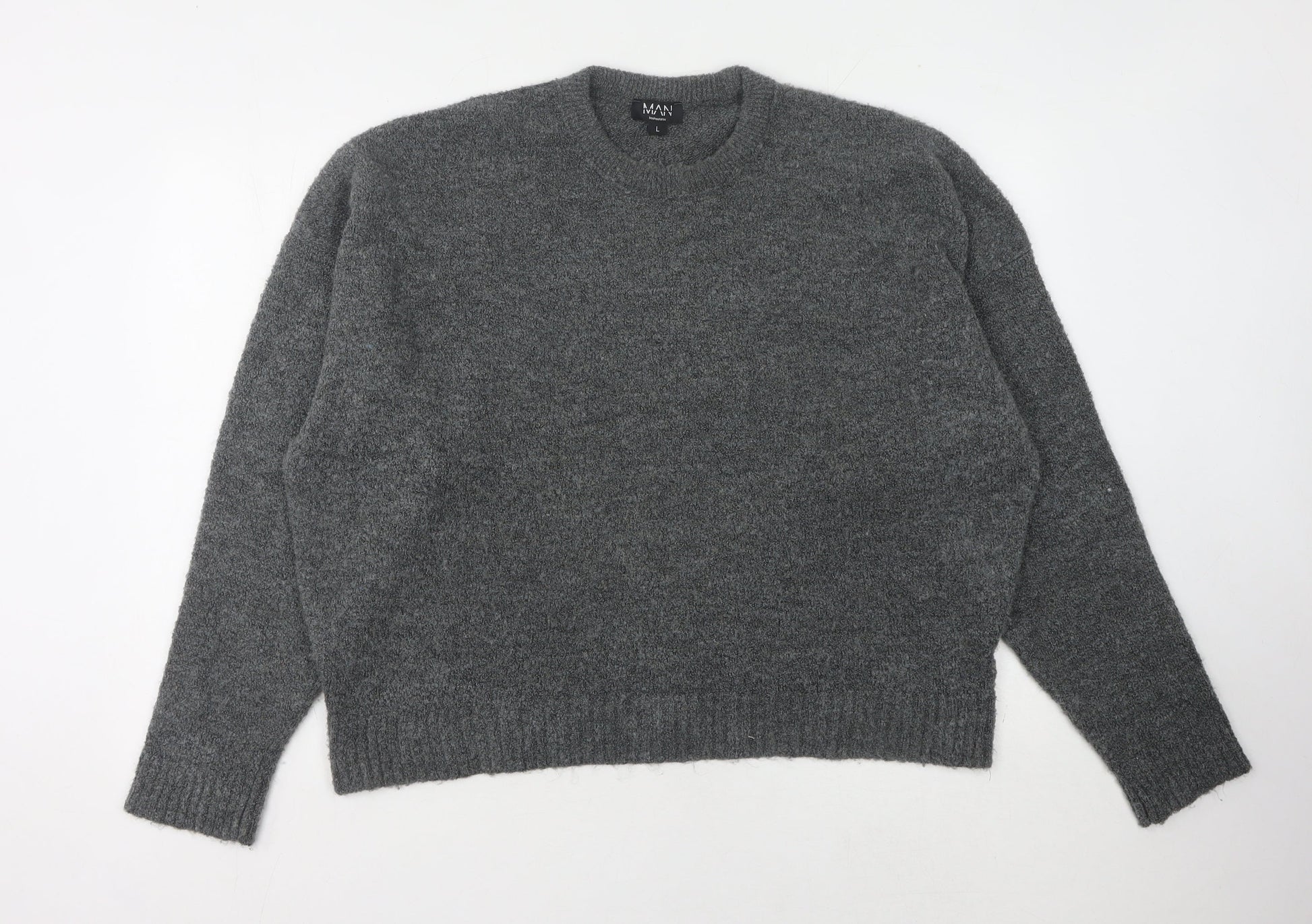 boohooMAN Men's Grey Knit Pullover Jumper L