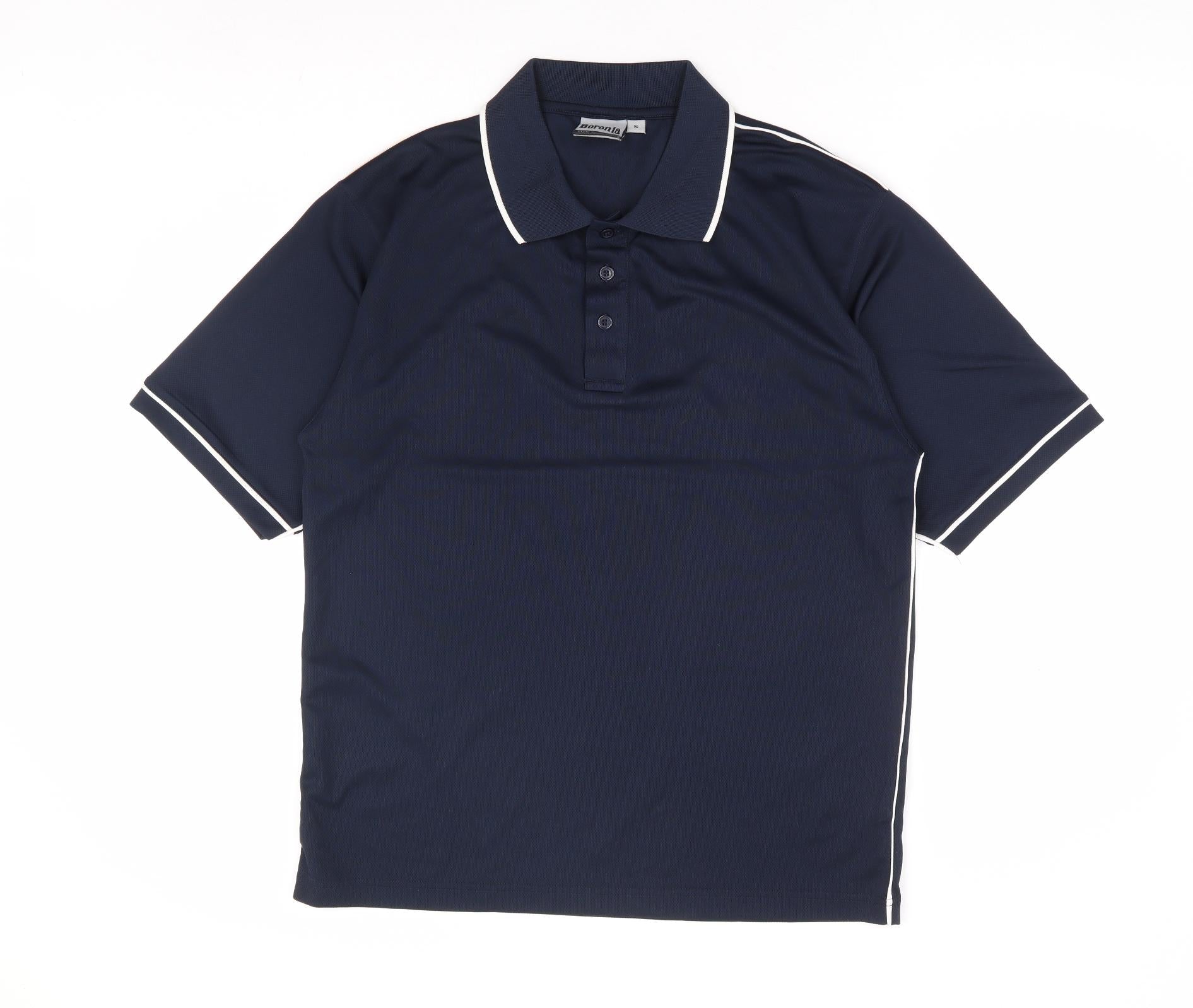 Boronia Mens Blue Polyester Polo Size S Collared Button - Contrast Trim