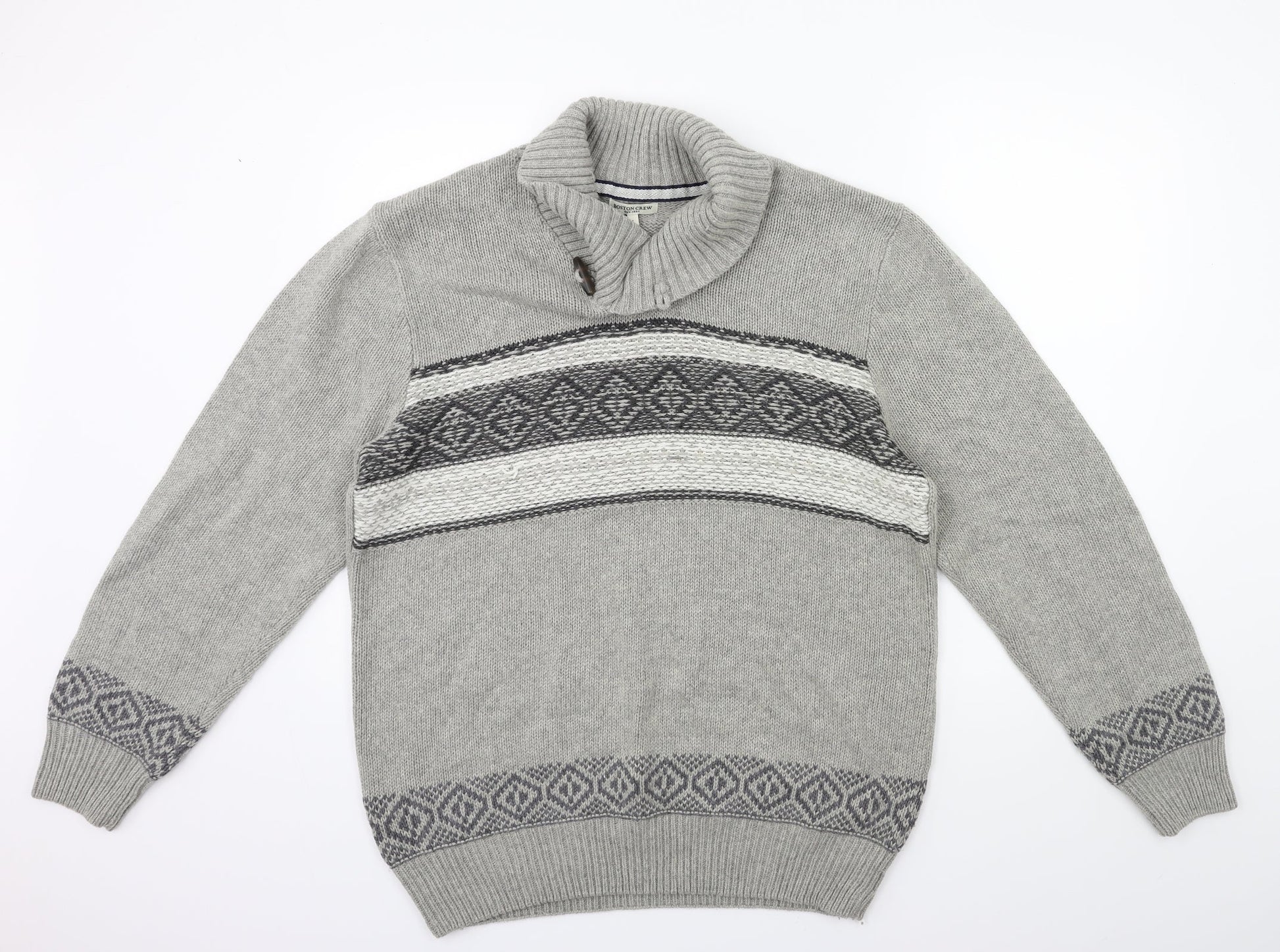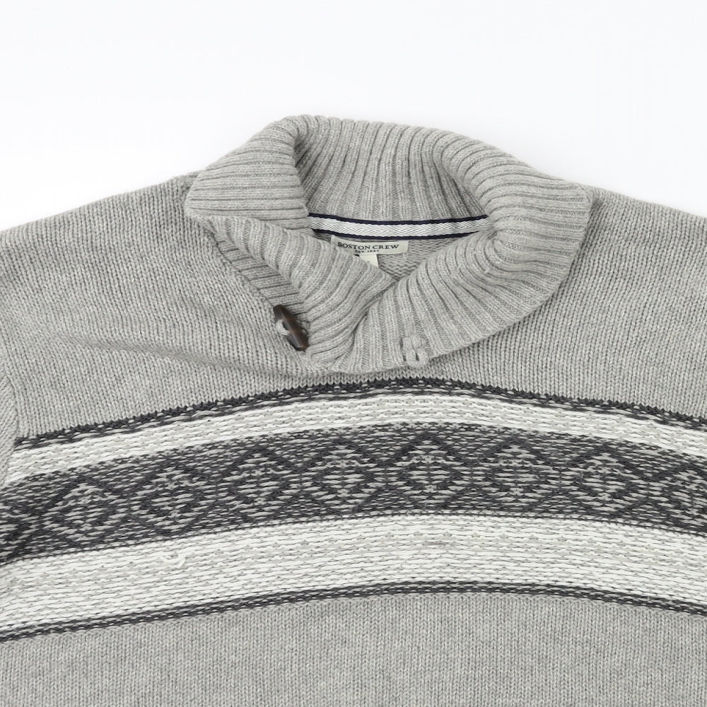 boston crew Mens Green Striped Knit Pullover Jumper Size L