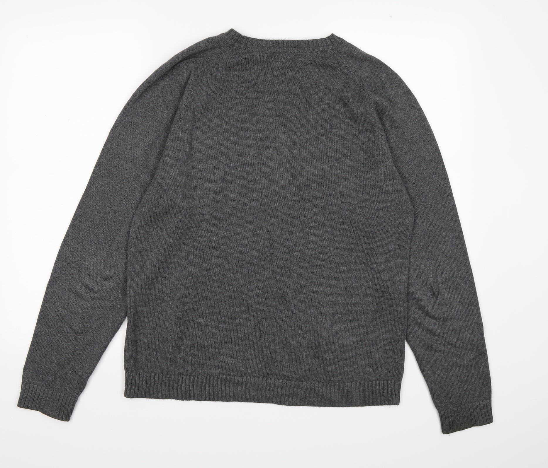 boston crew Mens Grey Knit Pullover Jumper Size S