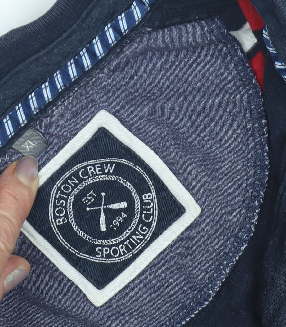 Boston Crew Men's XL Blue Striped Long Sleeve Polo