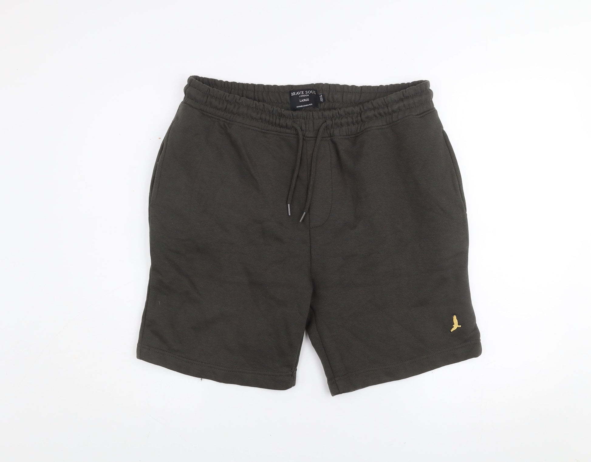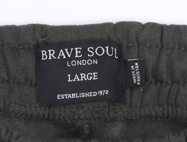 Brave Soul Men’s Green Sweat Shorts Size L Regular Fit Activewear