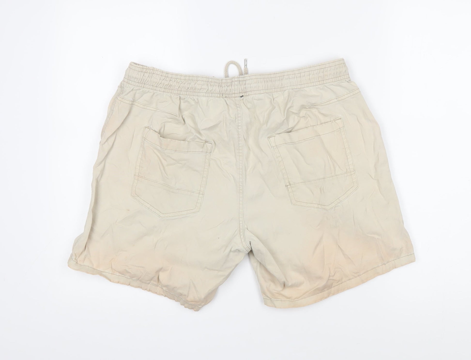 Brave Soul Mens Beige Cotton Bermuda Shorts Size L Regular Drawstring - Elasticated waist