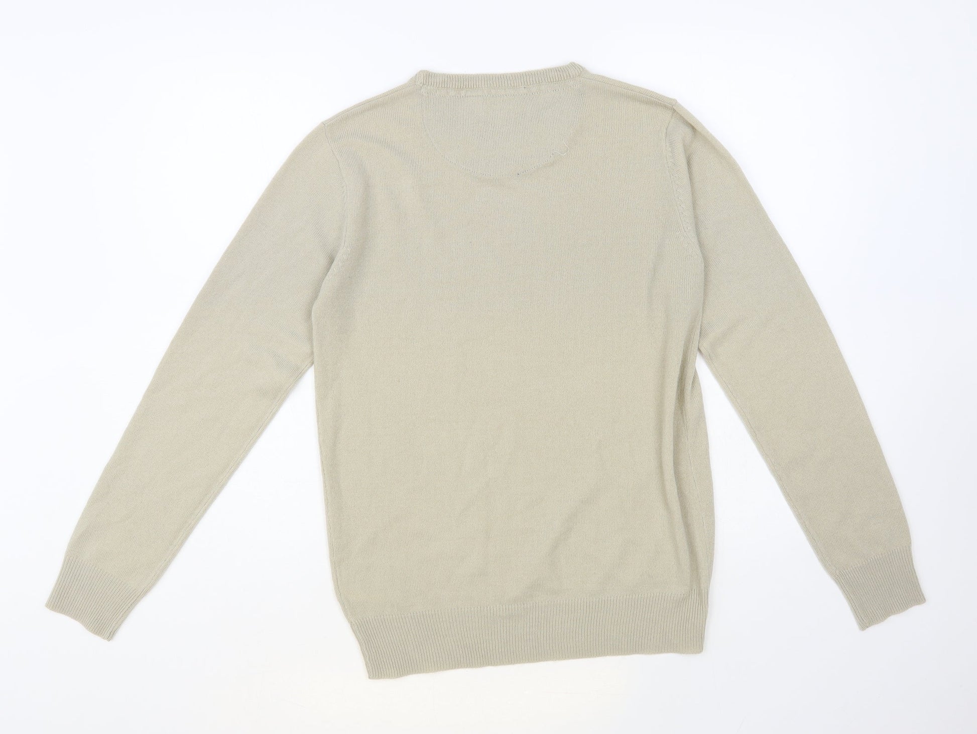 Brave Soul Mens Beige Crew Neck Acrylic Pullover Jumper Size S