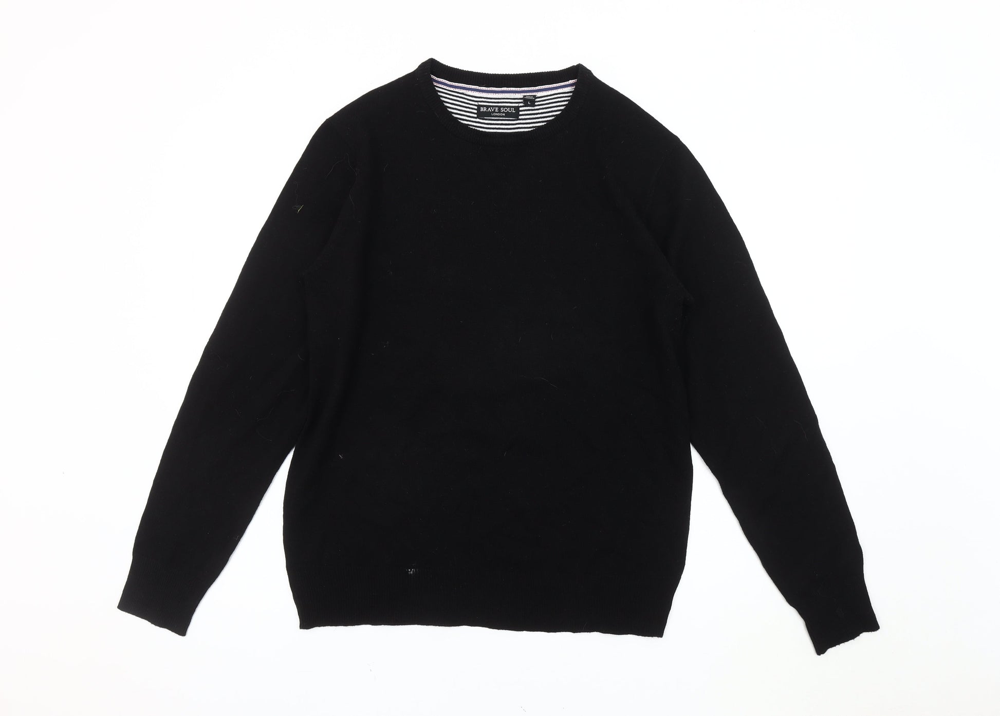 Brave Soul Men's Black Acrylic Crew Neck Jumper