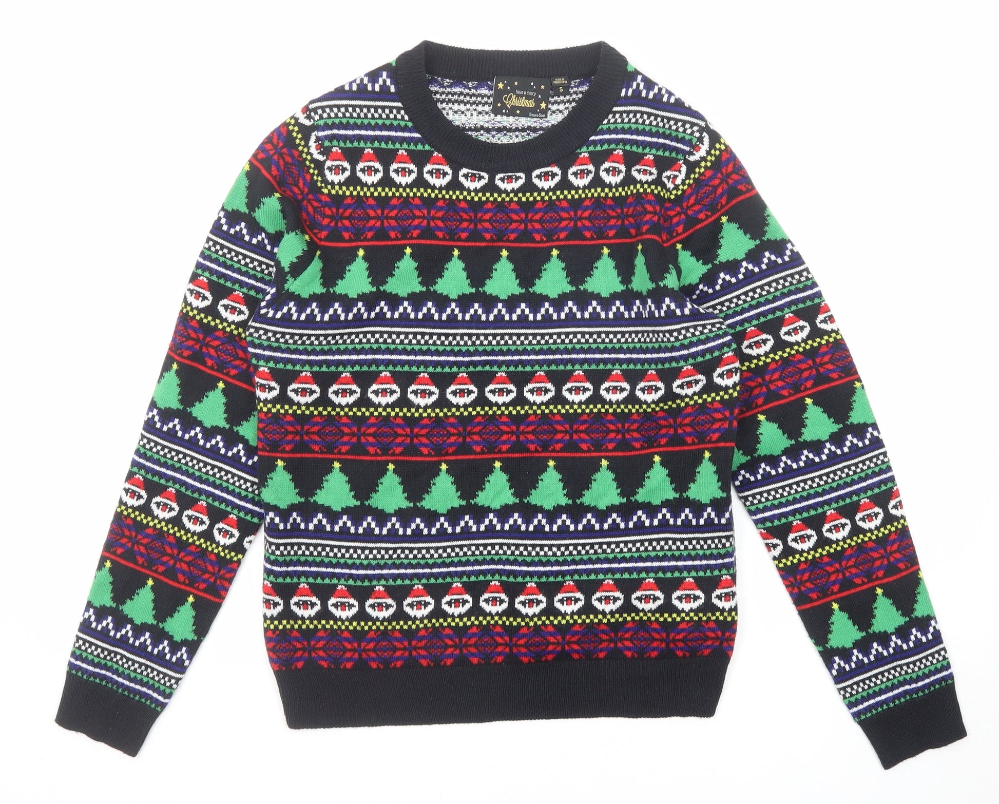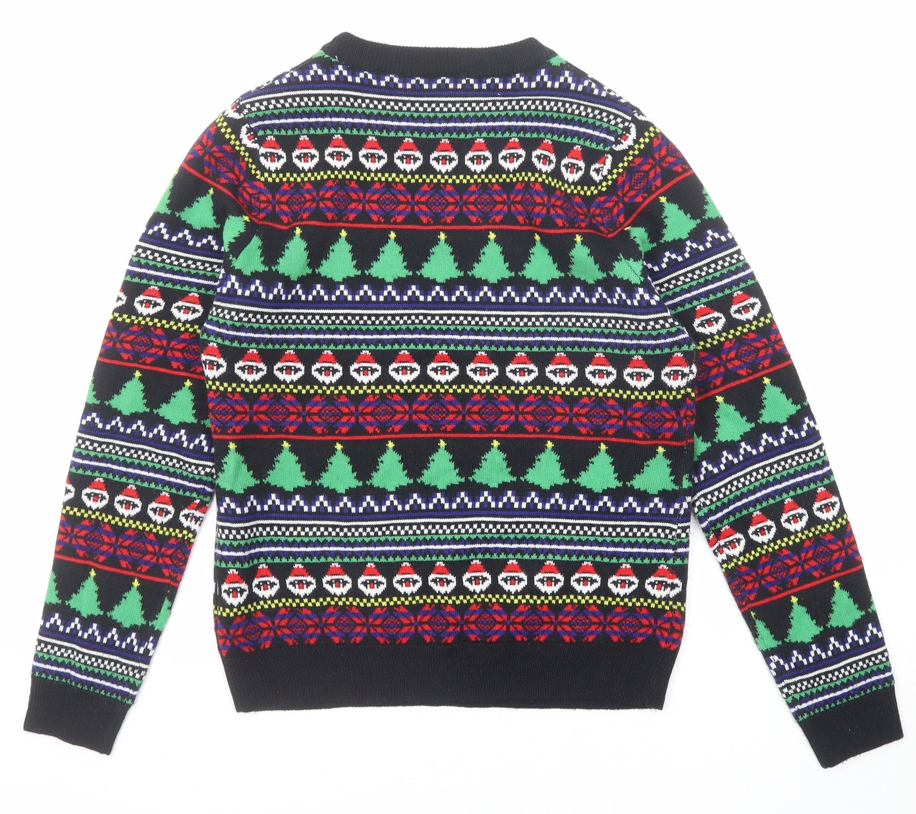 Brave Soul Mens Black Round Neck Fair Isle Acrylic Pullover Jumper Size S Long Sleeve - Christmas tree Father Christmas