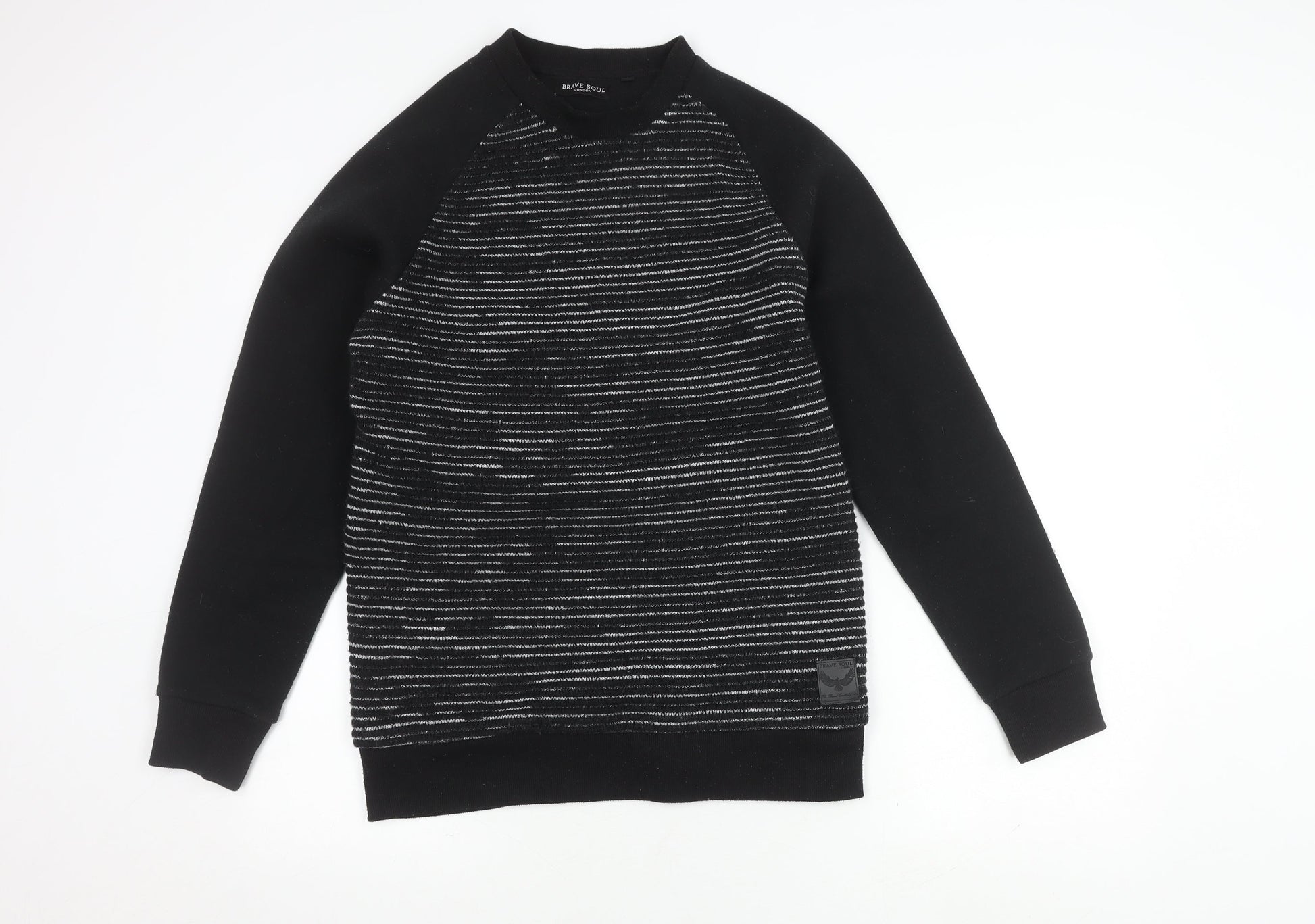 Brave Soul Men's Black Stripe Pullover Jumper Small