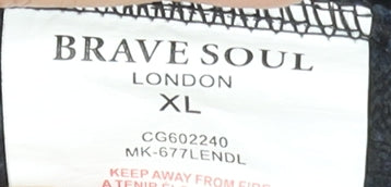 Brave Soul Men's Black XL Half Zip Rib-Knit Jumper