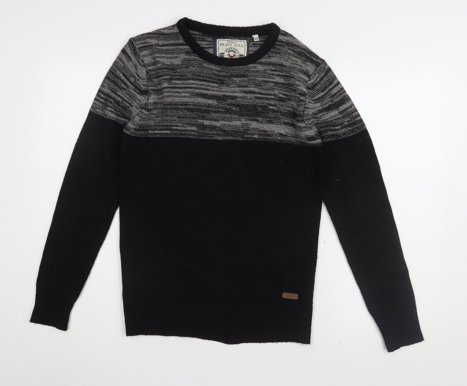 Brave Soul Men's Black XXS Pullover Jumper Crew Neck