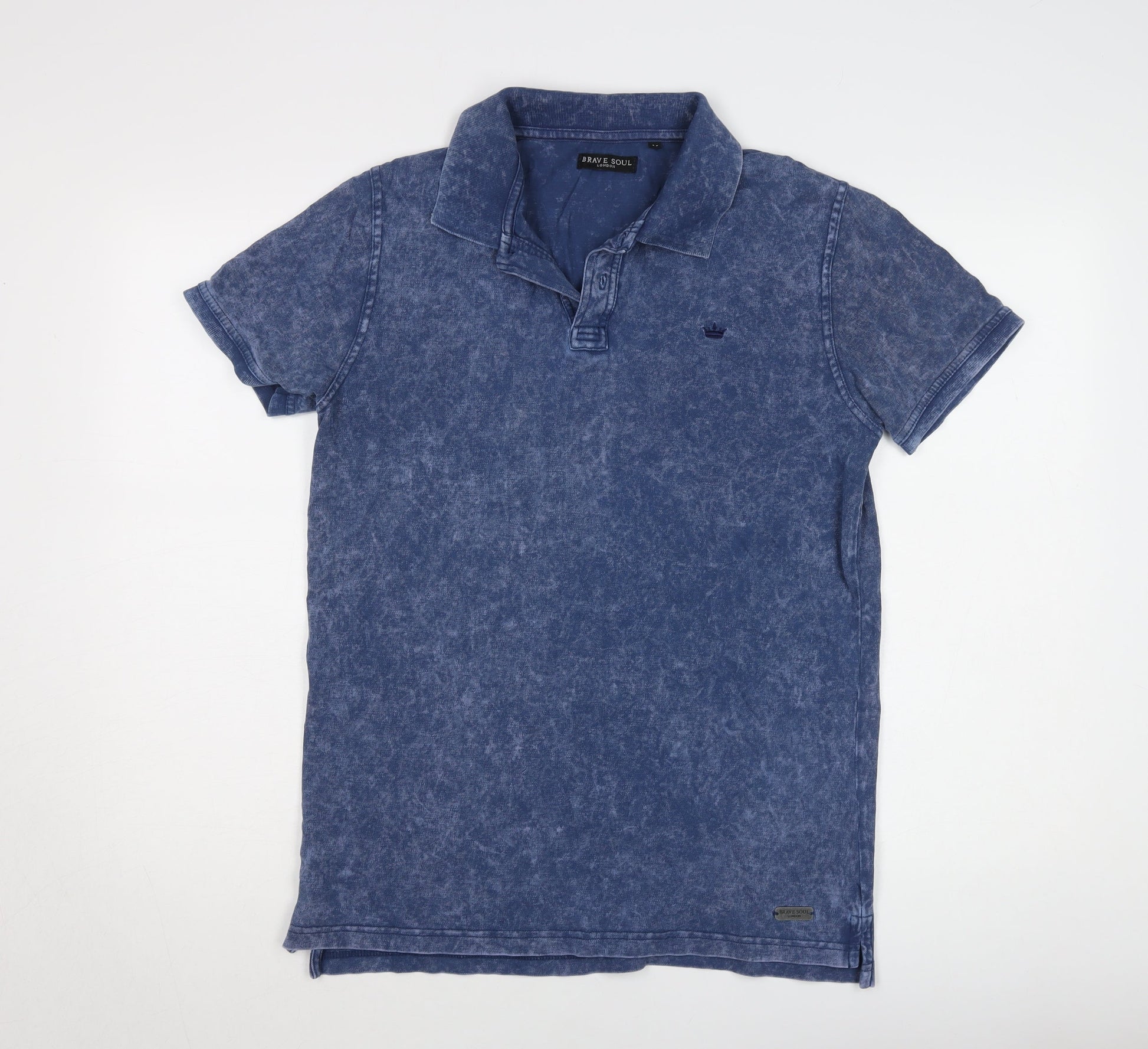 Brave Soul Men's Blue Acid Wash Polo Shirt M
