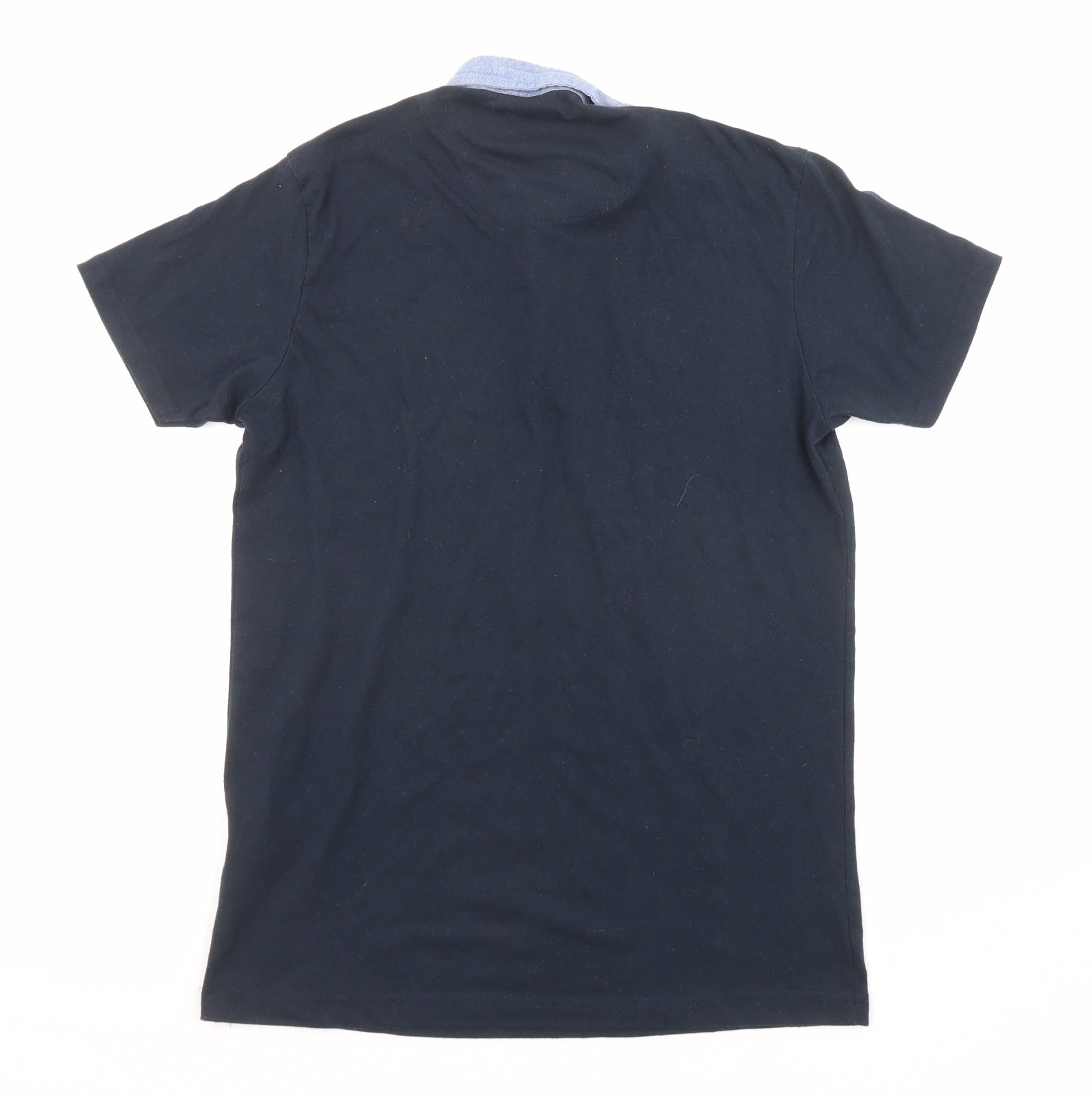 Brave Soul Mens Blue Polyester Polo Size S Collared Button