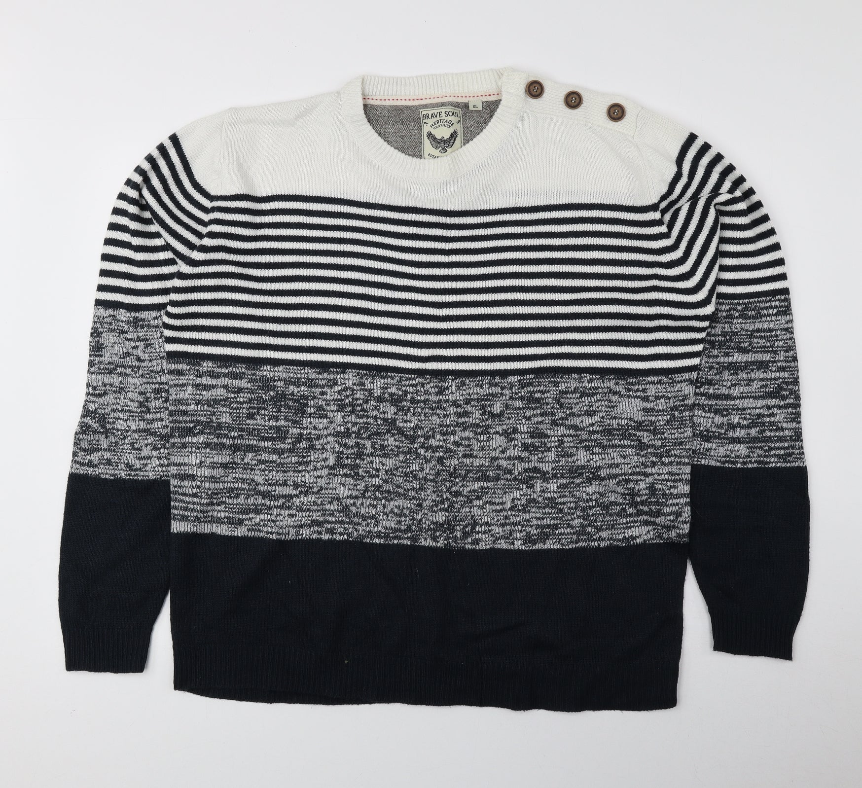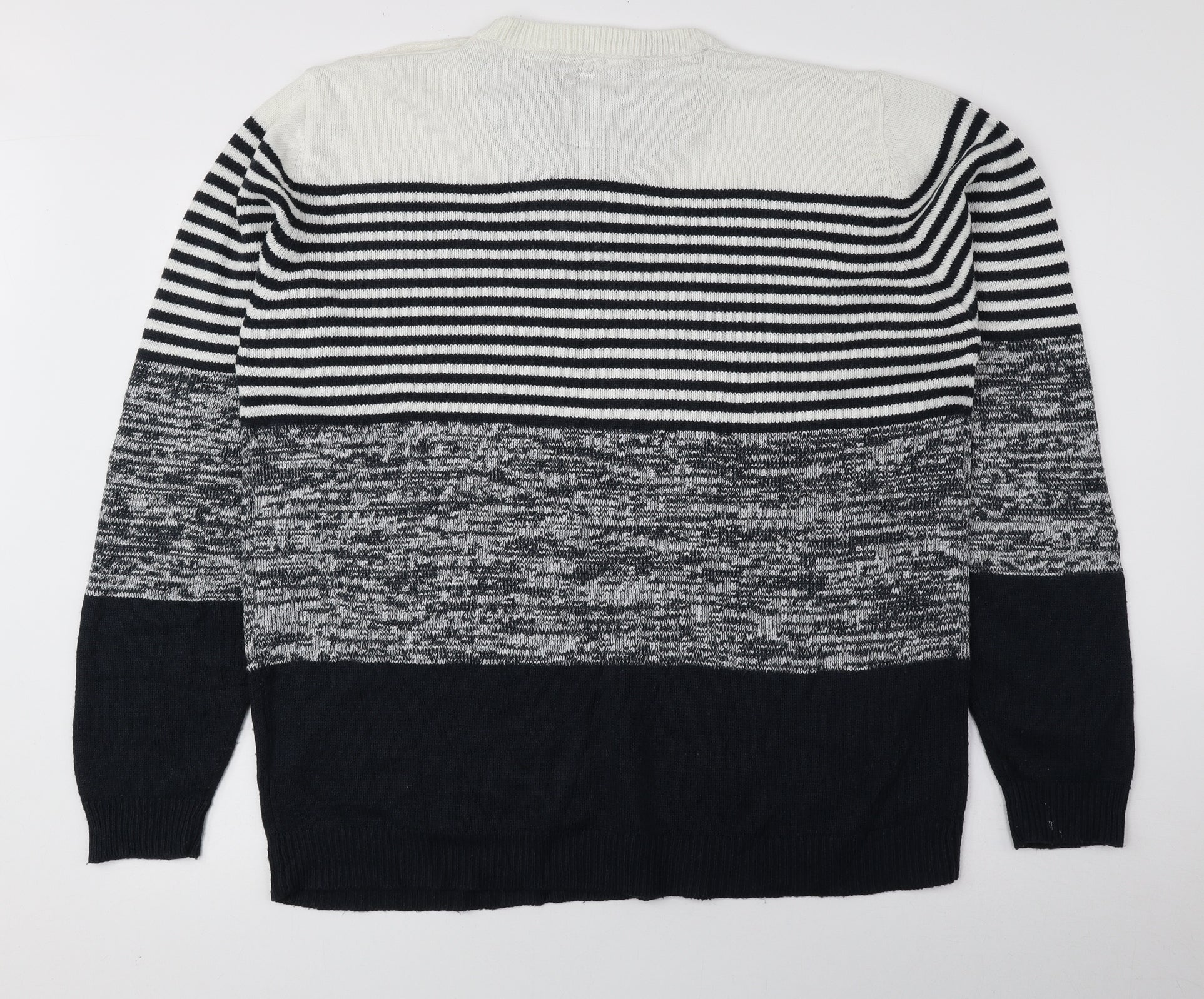 Brave Soul Mens Blue Round Neck Striped Acrylic Pullover Jumper Size XL