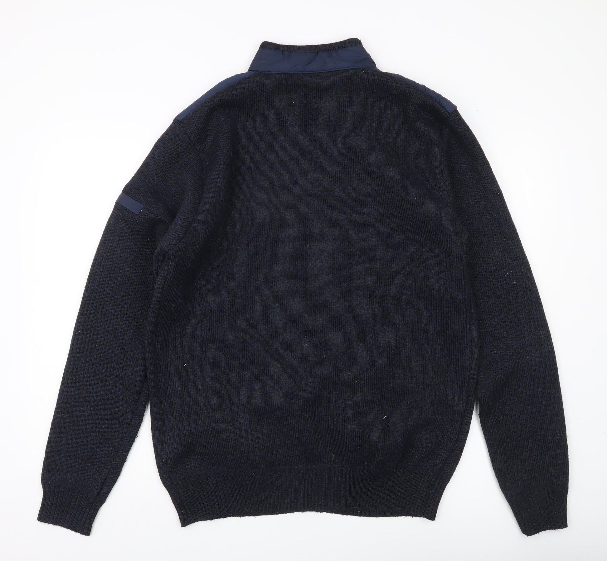 Brave Soul Mens Blue XL Full Zip High Neck Jumper with Logo
