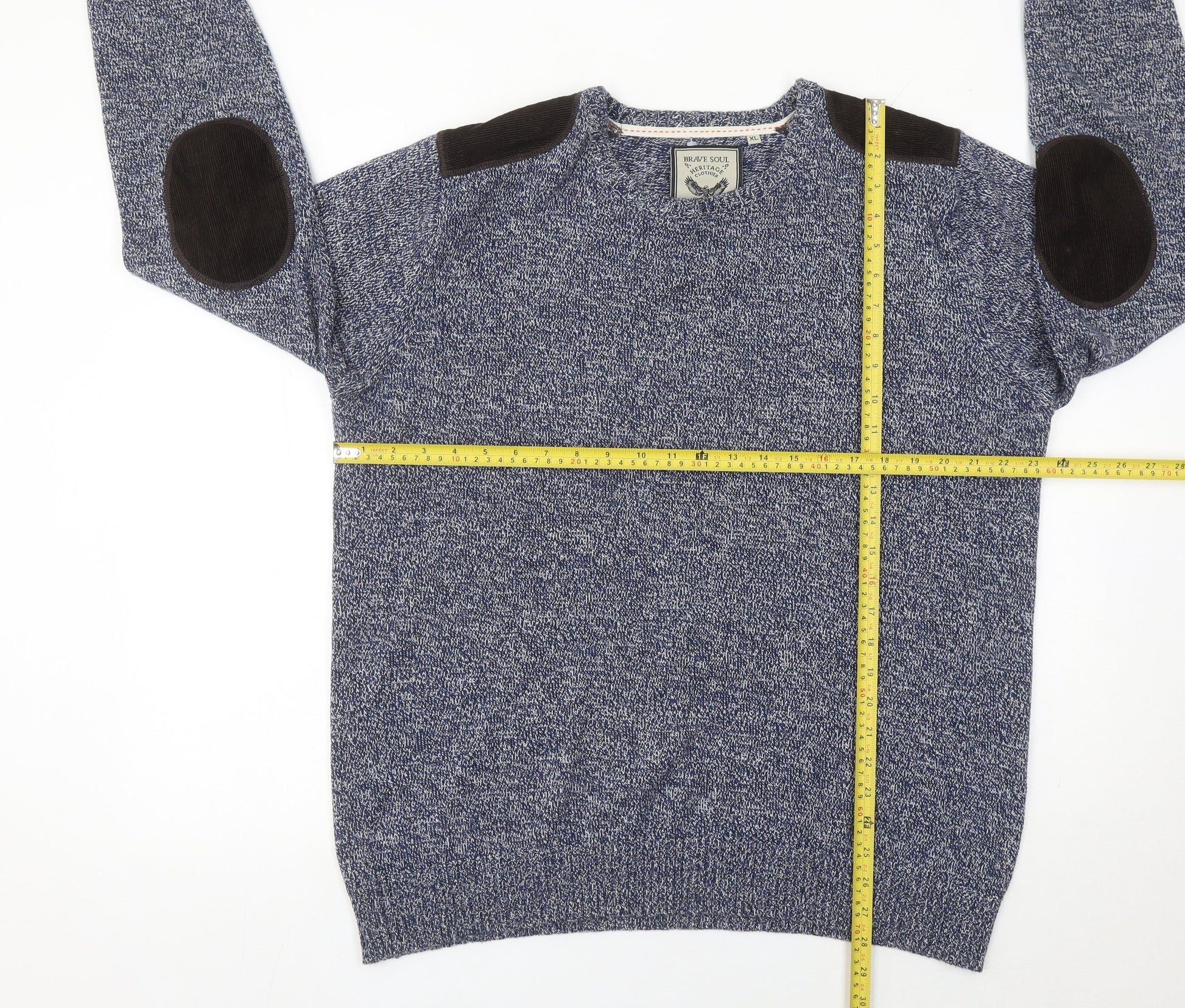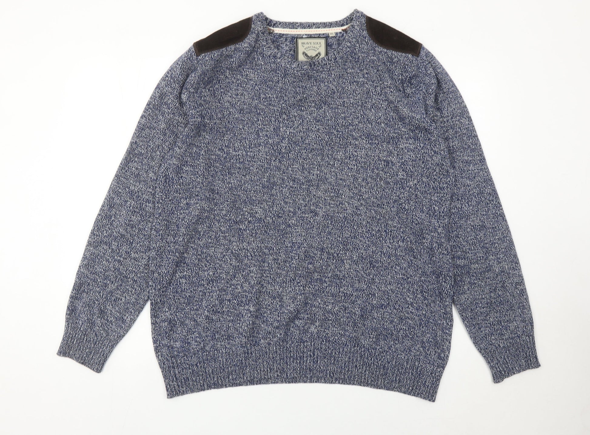 Brave Soul Men's Blue XL Pullover Jumper Crew Neck Cotton Knit