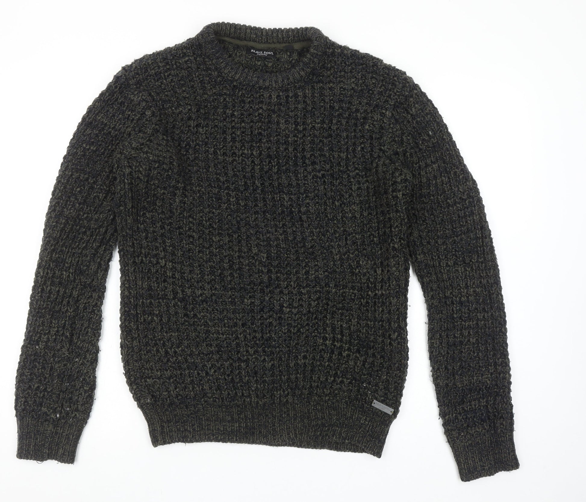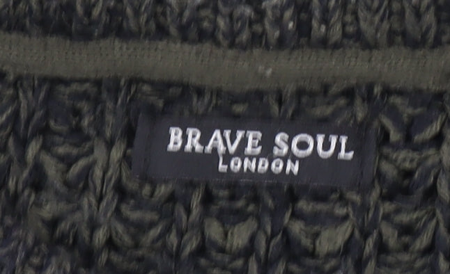 Brave Soul Men's Green Chunky Knit Crew Neck Jumper Size M