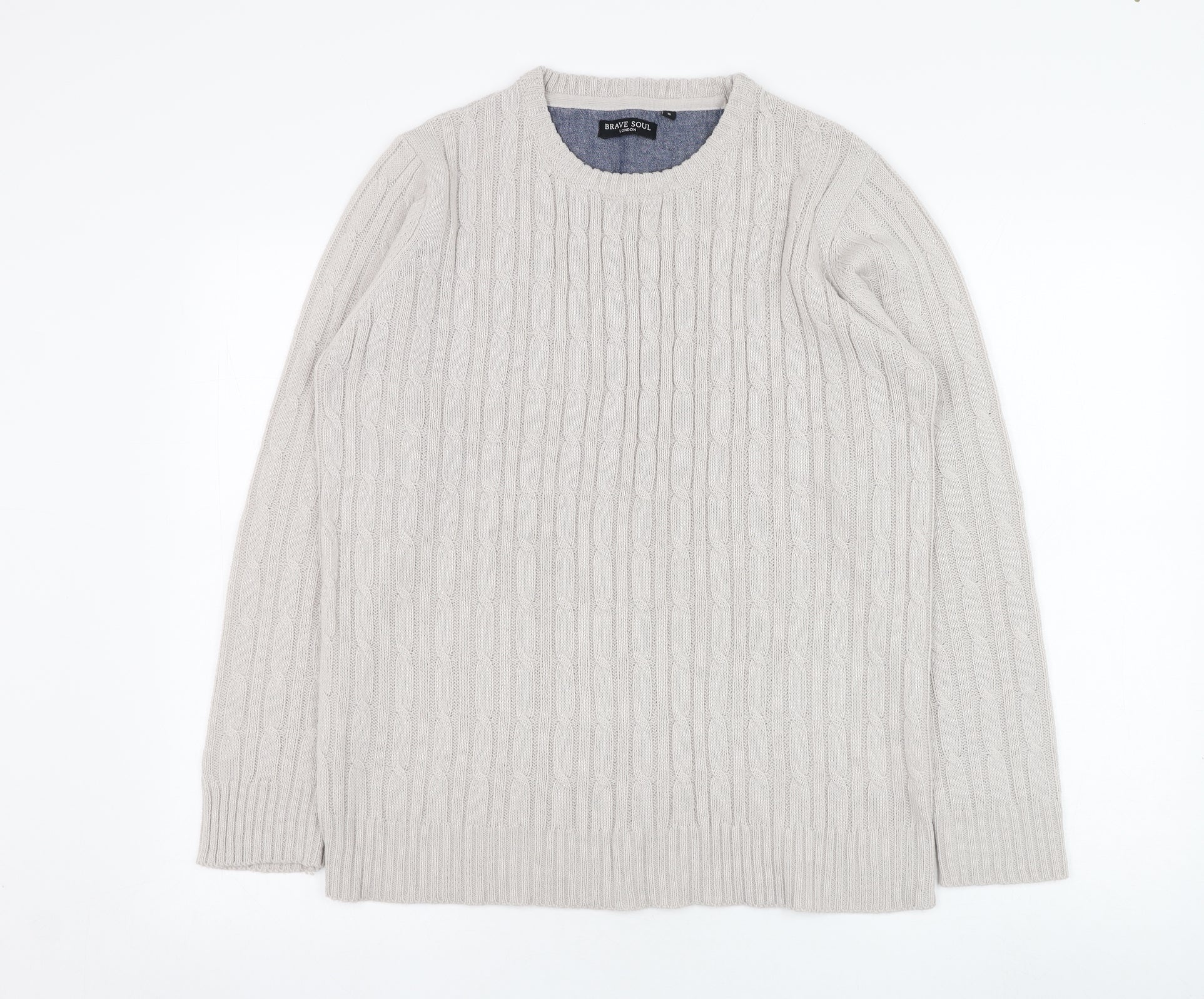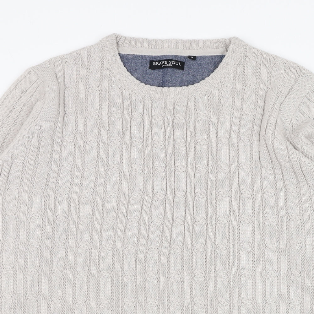 Brave Soul Mens Grey Round Neck Acrylic Pullover Jumper Size S