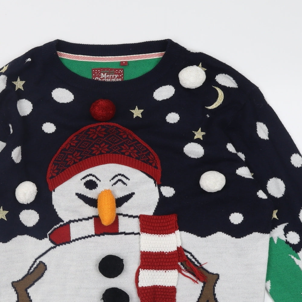 Brave Soul Mens Multicoloured Crew Neck Geometric Acrylic Pullover Jumper Size S - chrismas jumper