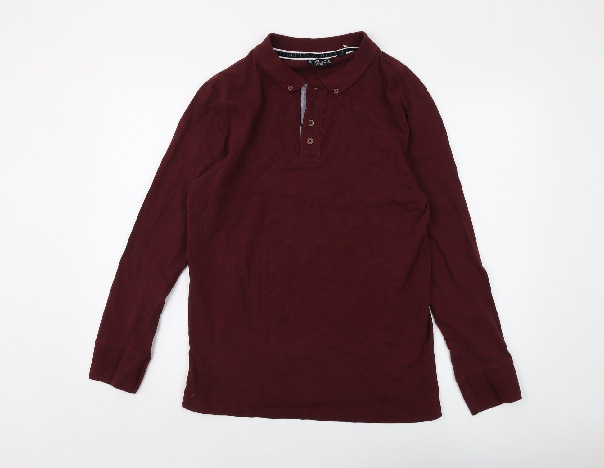 Brave Soul Mens Red Cotton Polo Size L Collared Button