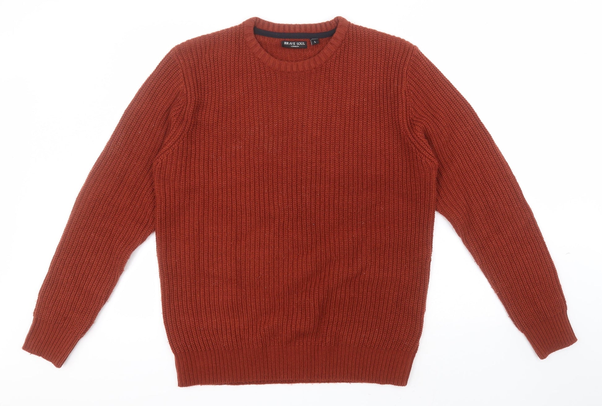 Brave Soul Mens Red Round Neck Acrylic Pullover Jumper Size L