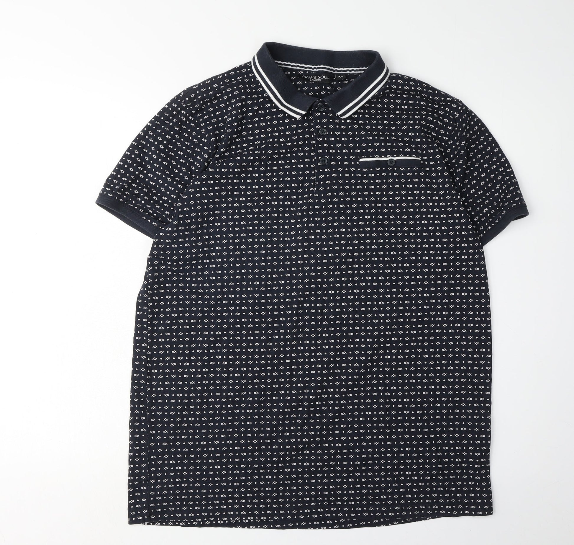 Brave Soul Men's XL Black Geometric Polo Shirt