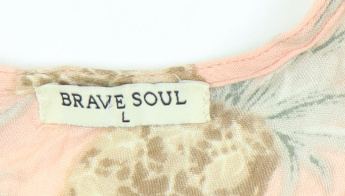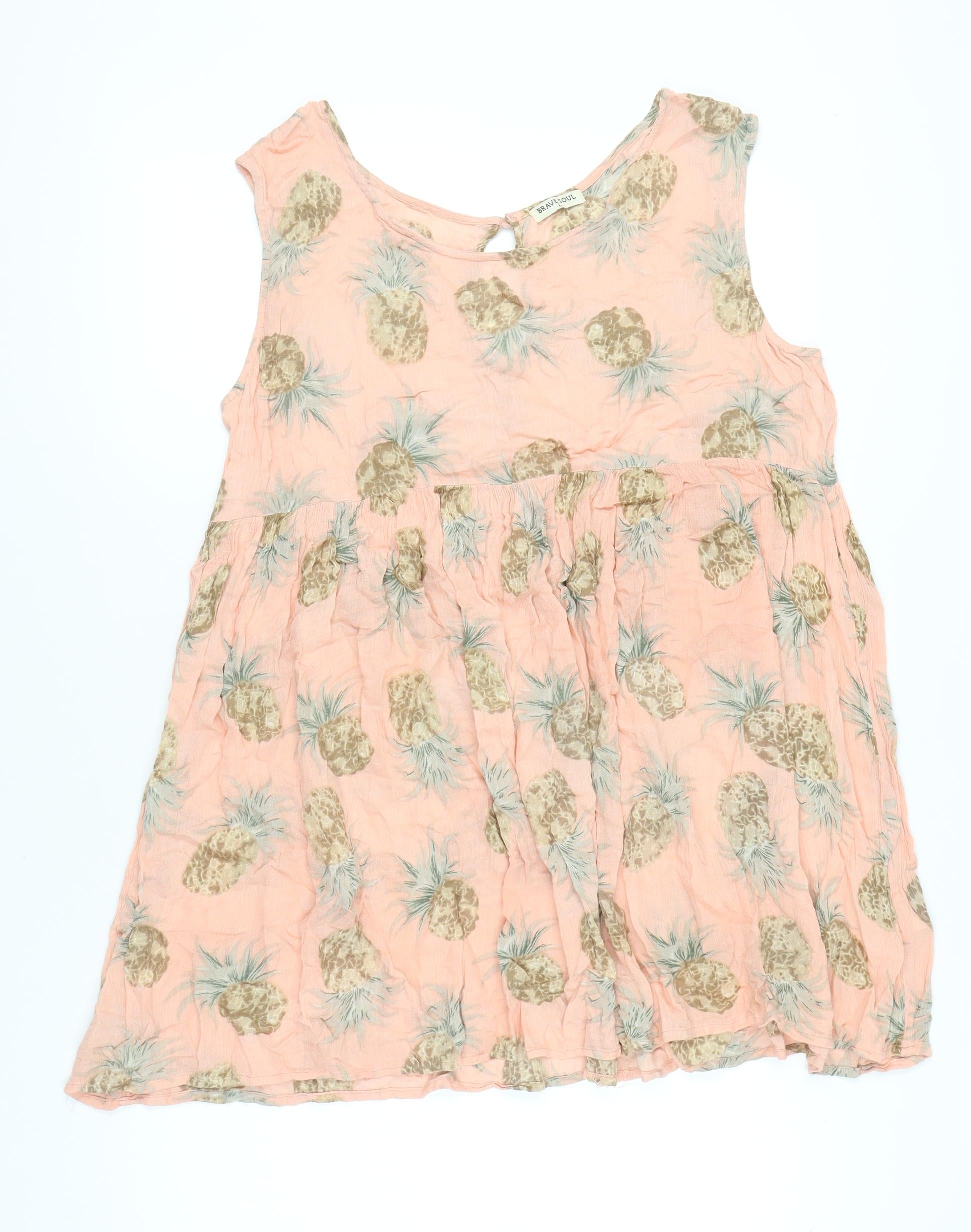 Brave Soul Women’s Pink Tropical Pineapple A-Line Sleeveless Dress L