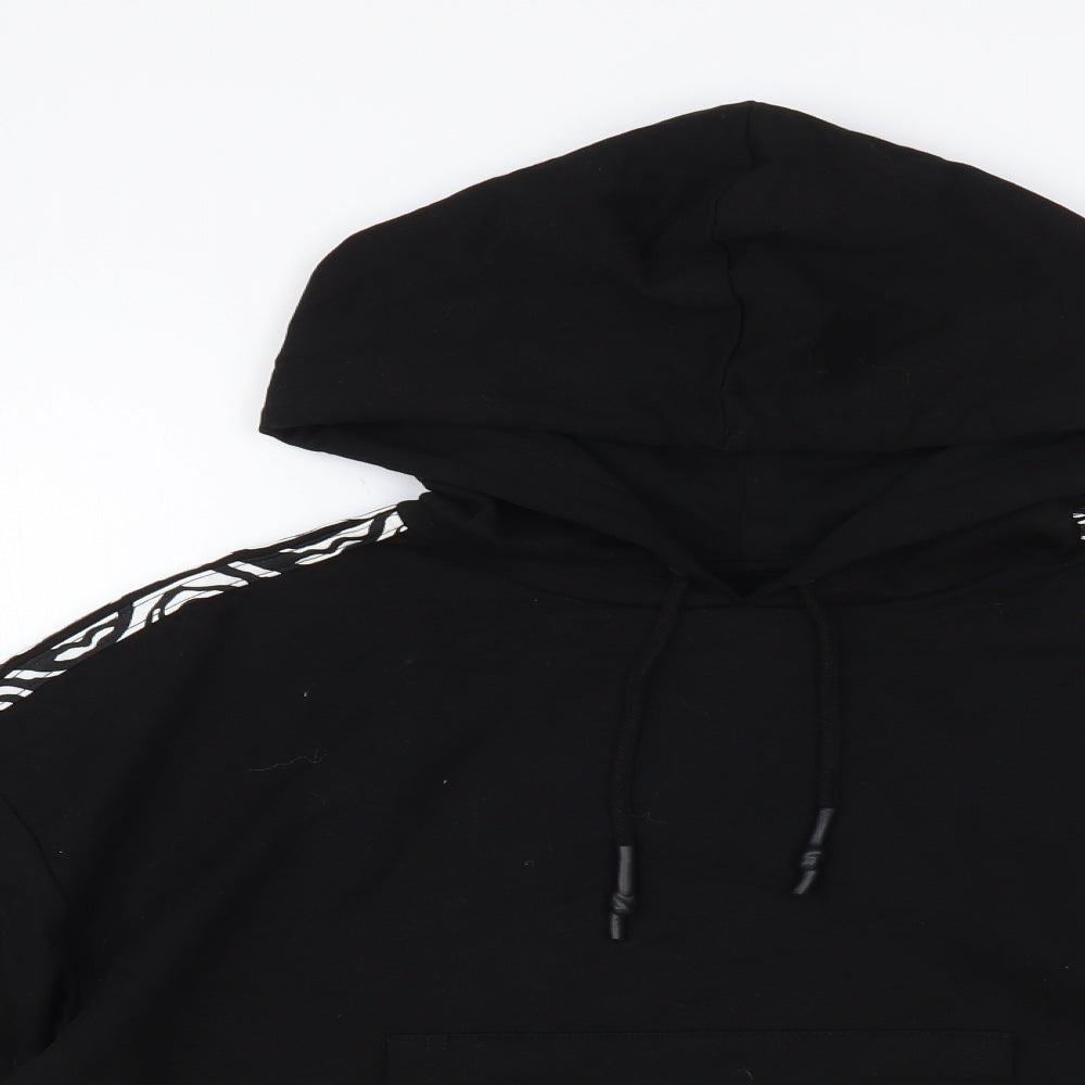 Brave Soul Womens Black Animal Print Cotton Pullover Hoodie Size M Pullover - Cropped