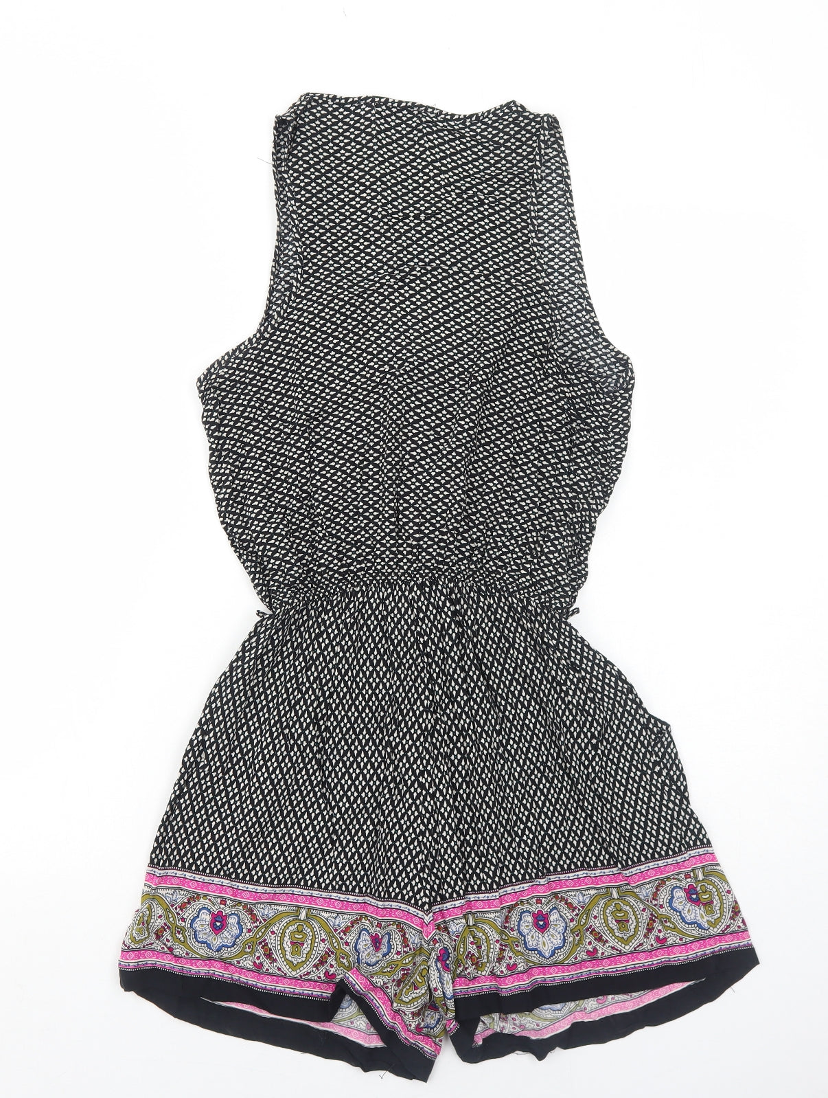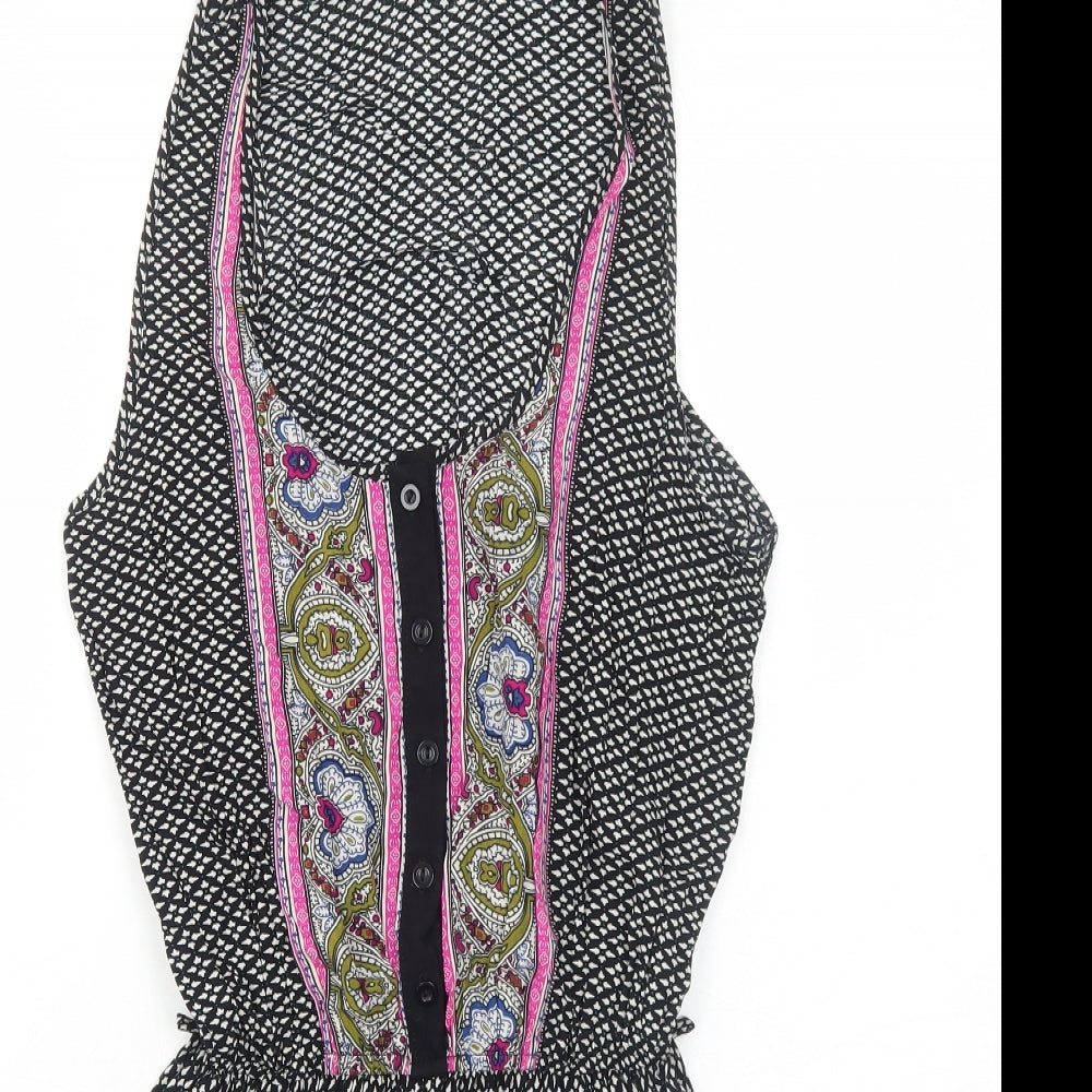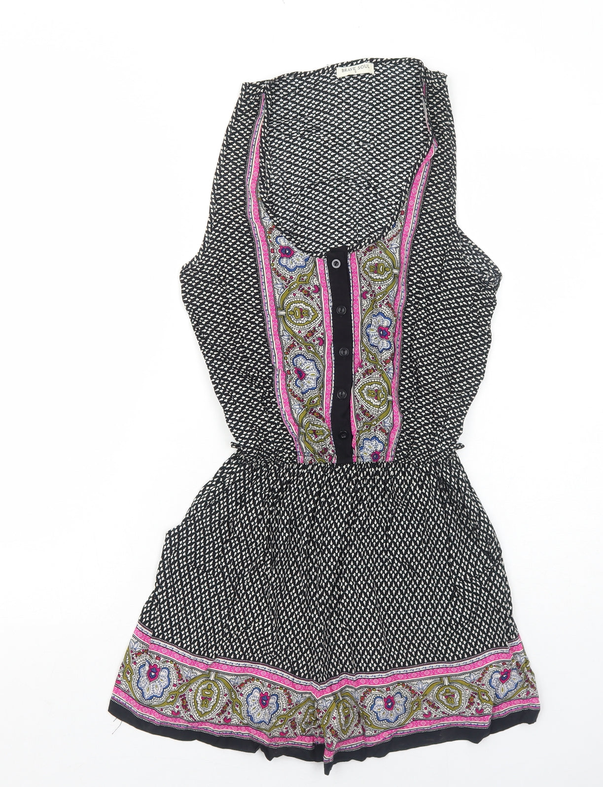 Brave Soul Womens Black Geometric Viscose Playsuit One-Piece Size S Button