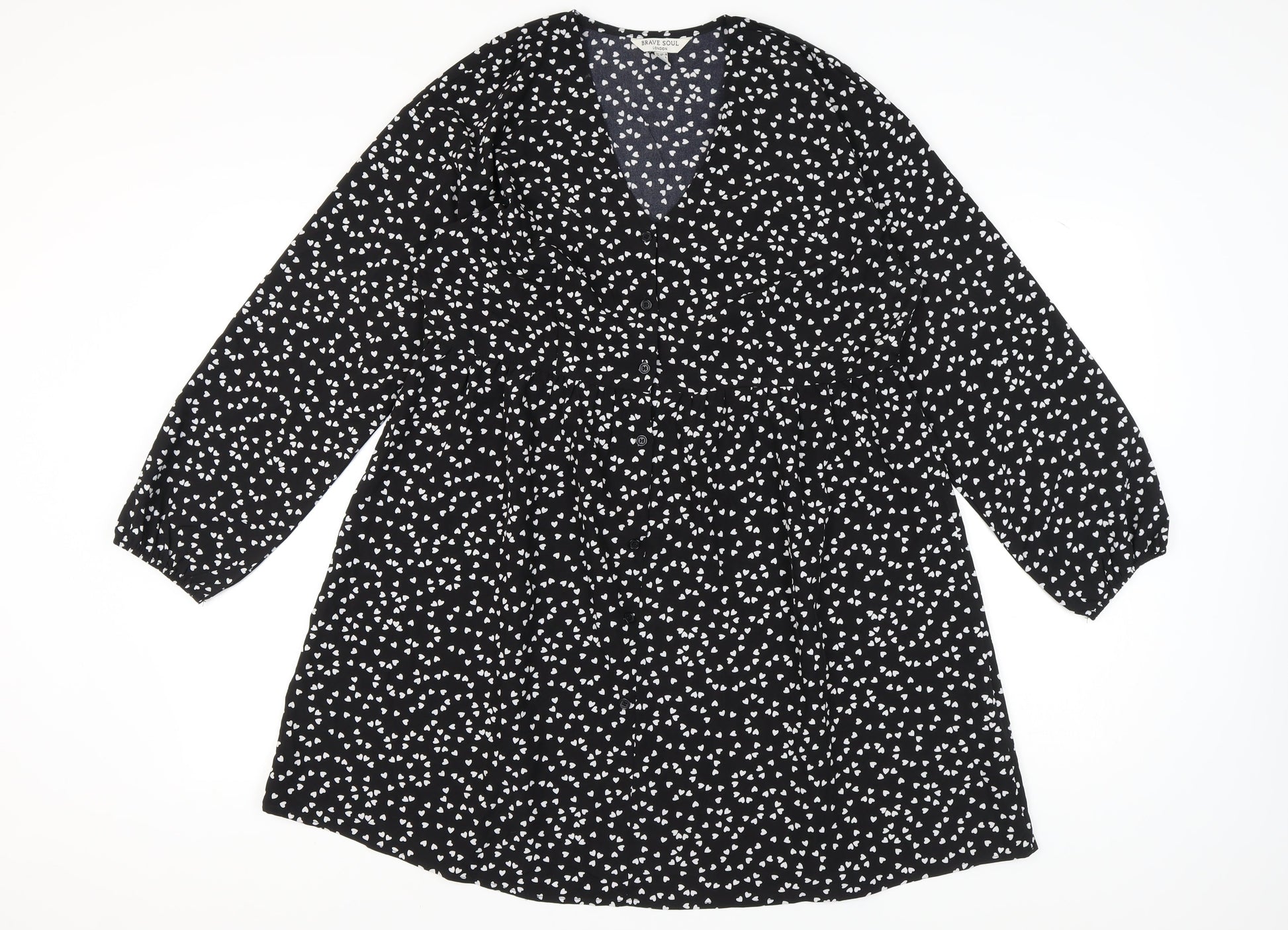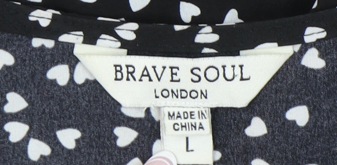 Brave Soul Women's Black Heart Pattern V-Neck Dress L