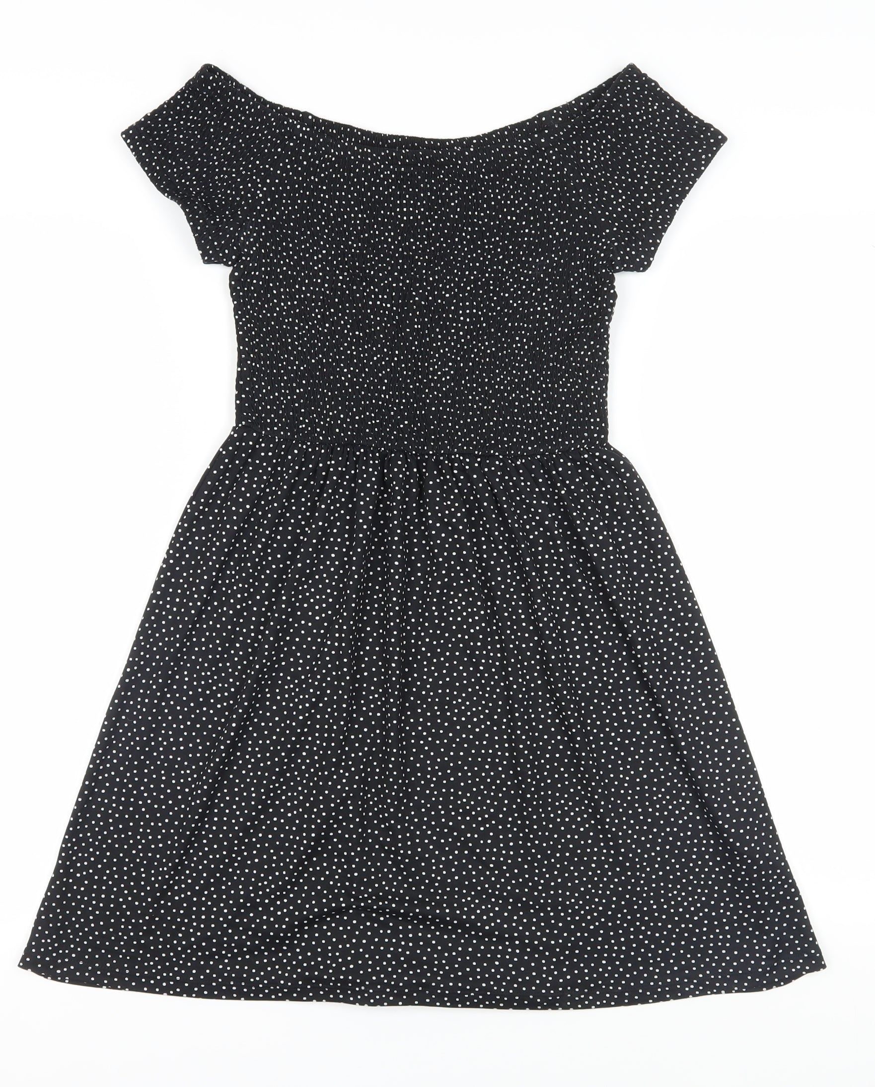 Brave Soul Women's Black XS Off-shoulder Polka Dot Dress
