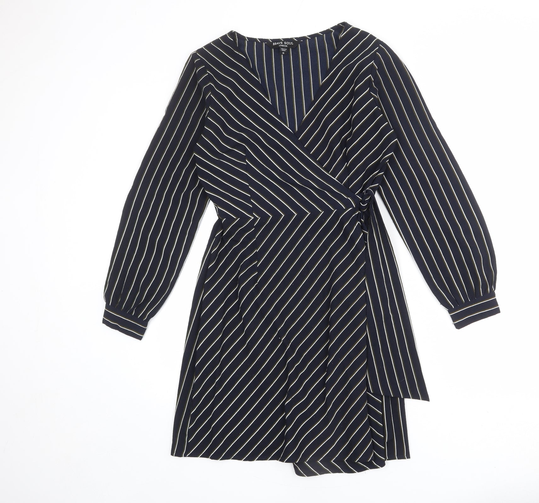 Brave Soul Womens Blue Striped Polyester Wrap Dress Size S V-Neck Tie