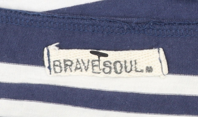 Brave Soul Womens Blue Striped T-Shirt Dress Size M V-Neck Sleeveless