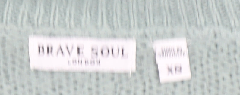 Brave Soul Womens Green V-Neck Knit Long Sleeve Pullover Jumper XS