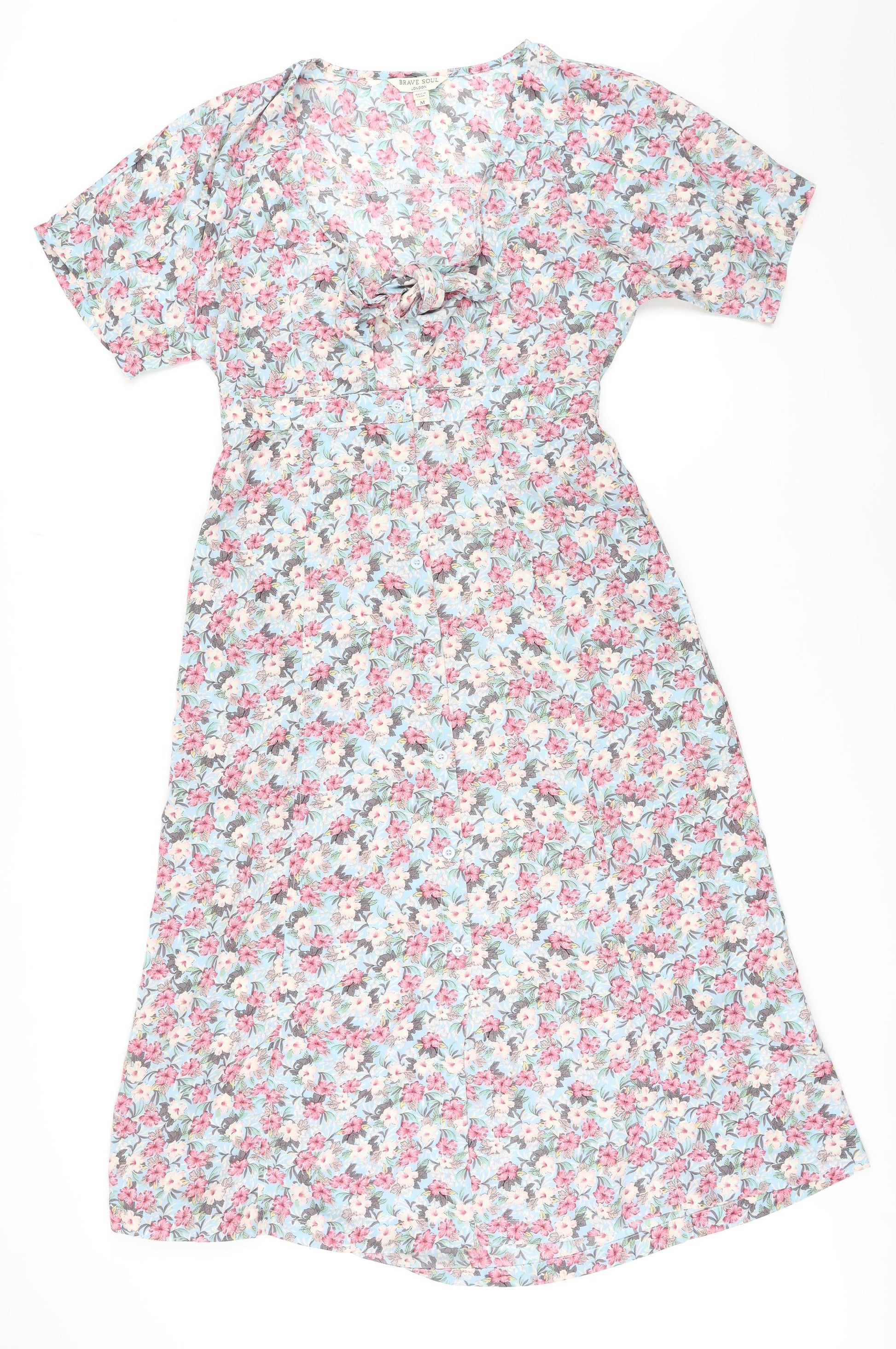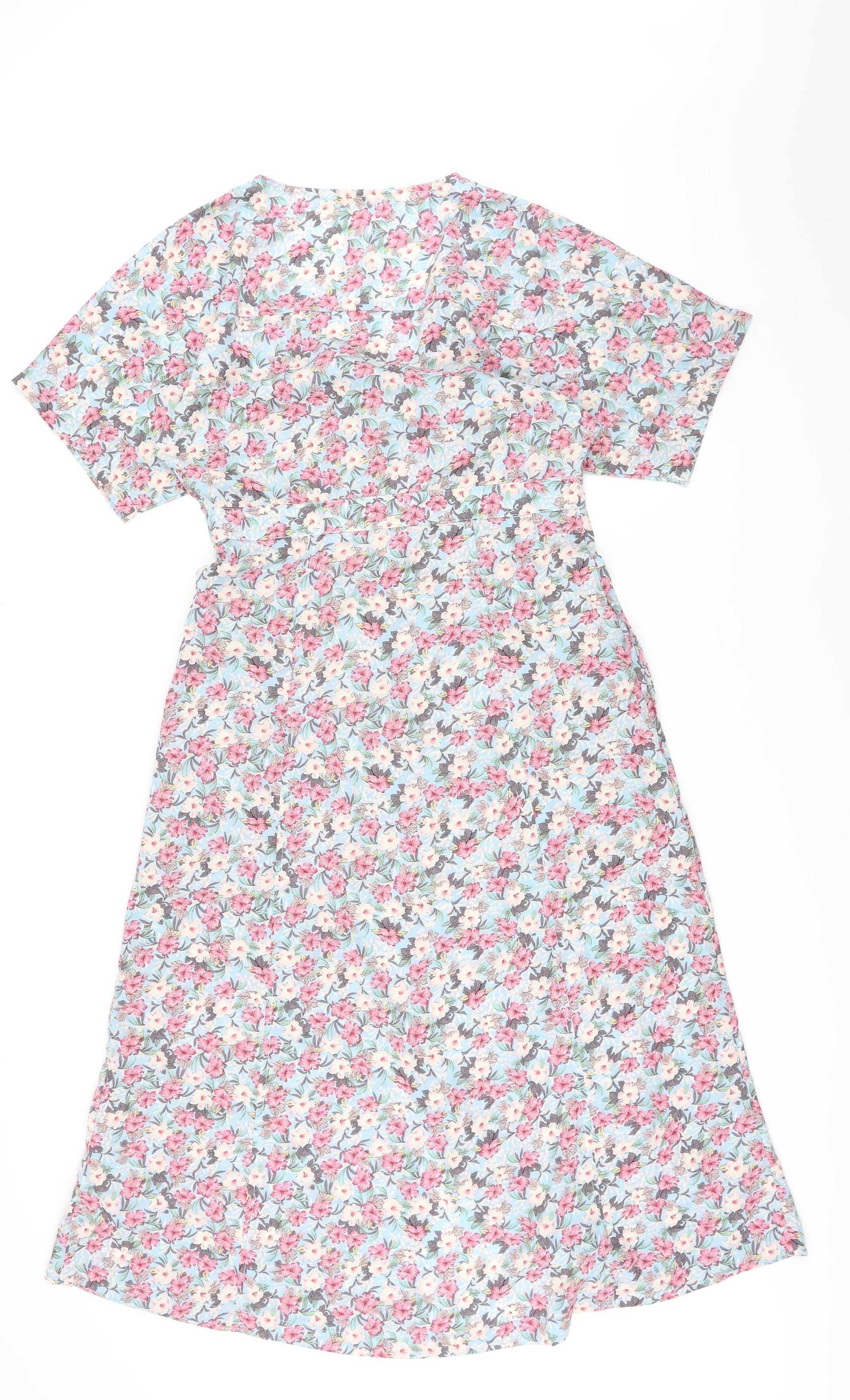 Brave Soul Womens Multicoloured Floral Polyester A-Line Size M V-Neck Button