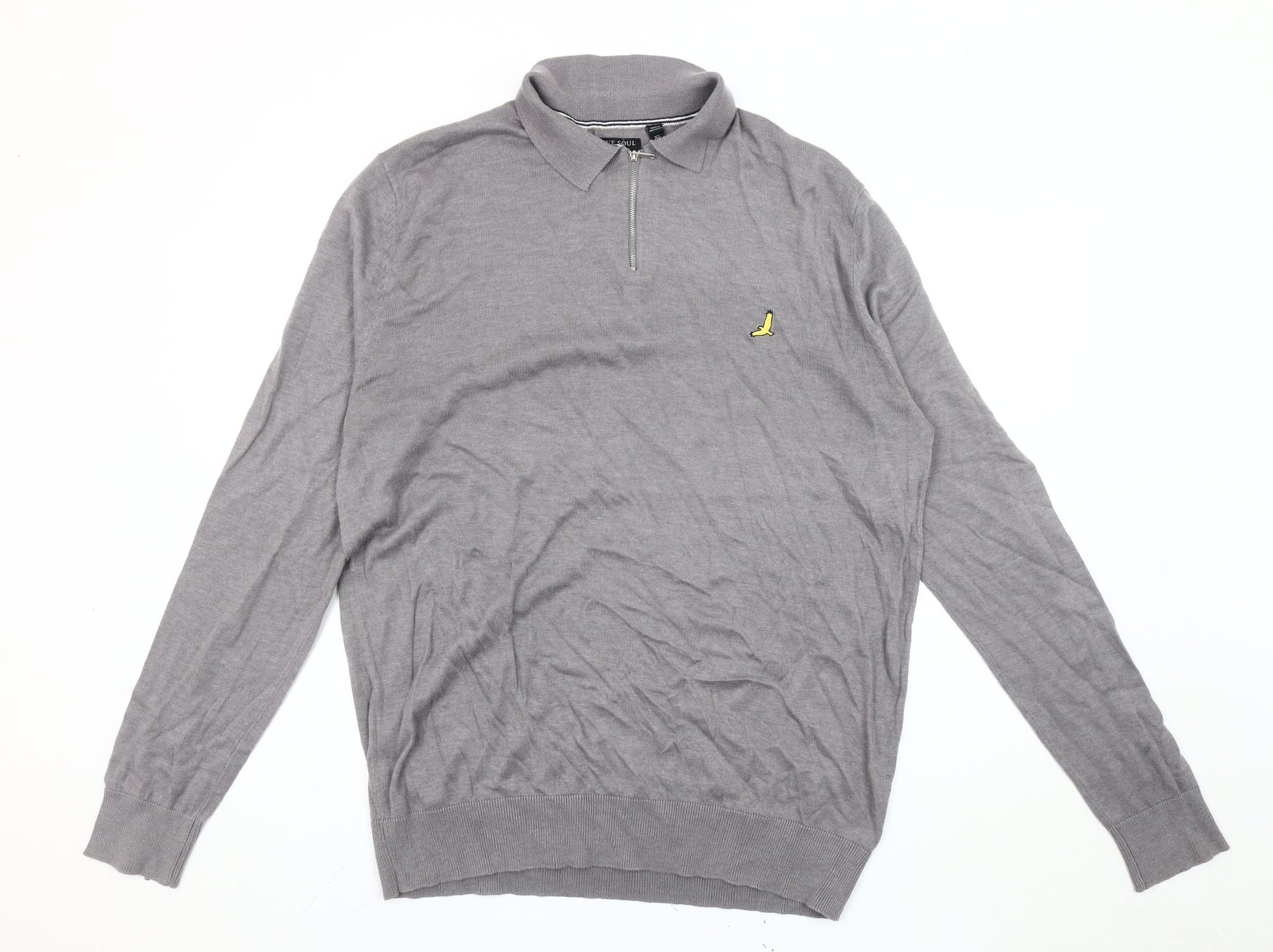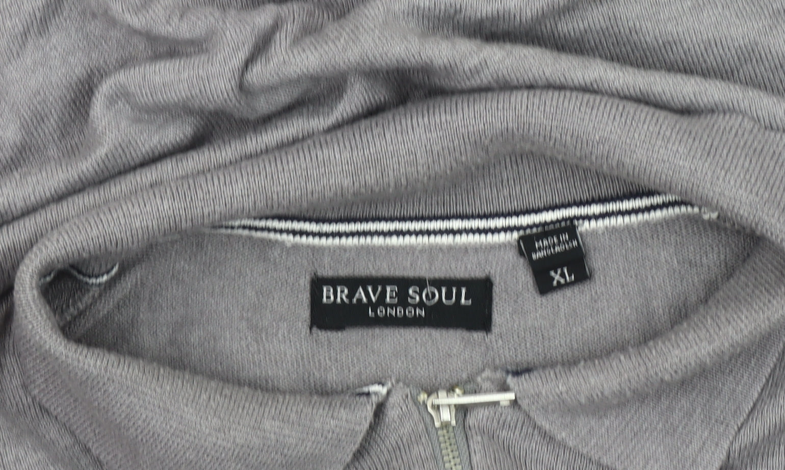 Brave Soul XL Men's Grey Collared Full Zip Jumper